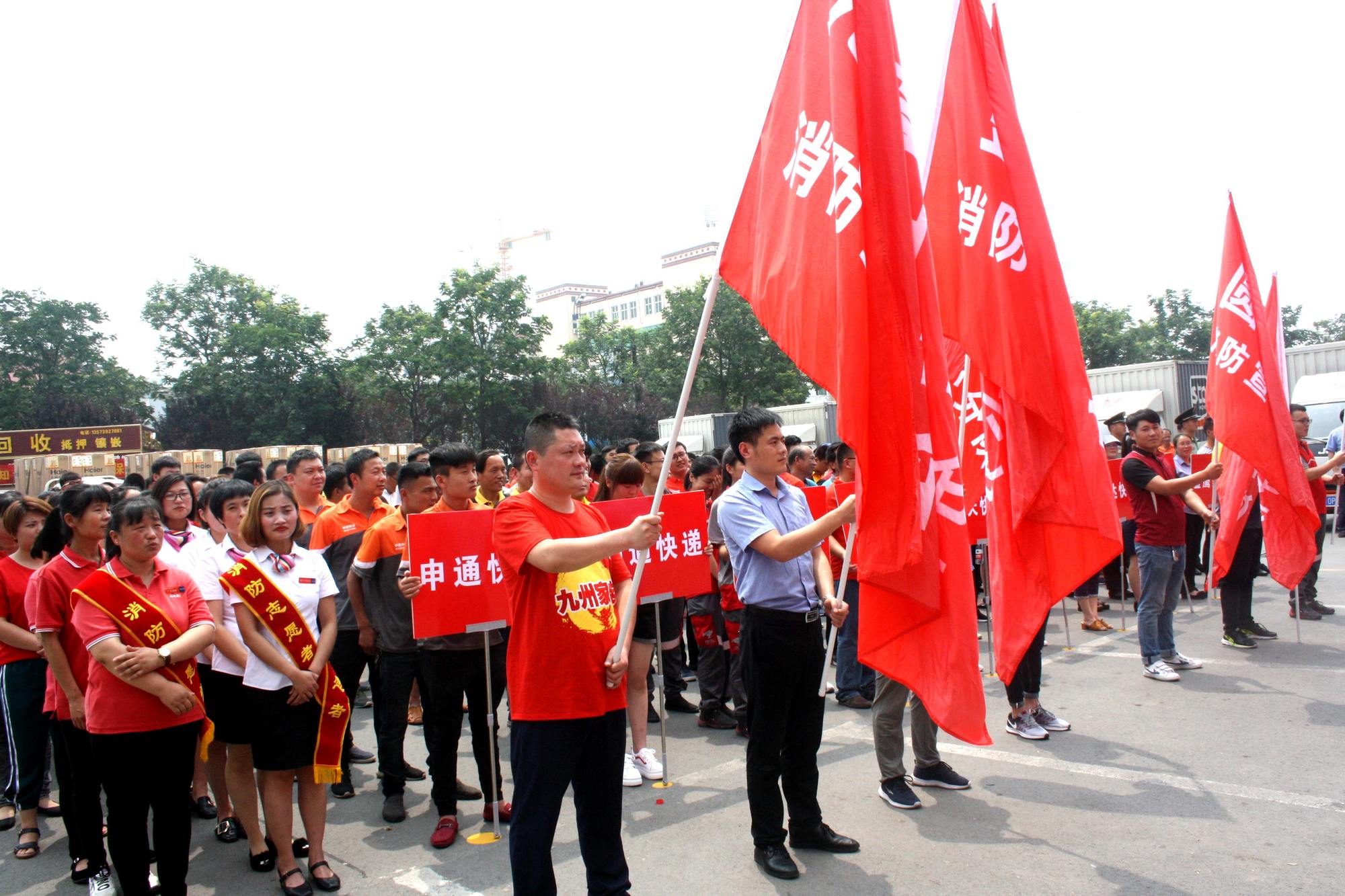 6月21日上午,臨沂市公安消防支隊(duì)在九州購物中心河?xùn)|店舉行“消防安全進(jìn)萬家”公益宣傳活動啟動儀式。山東省公安消防總隊(duì),臨沂市公安消防支隊(duì),河?xùn)|區(qū)委、區(qū)政府相關(guān)領(lǐng)導(dǎo),以及來自九州集團(tuán)等單位員工代表300余人參加啟動儀式。 啟動儀式上,臨沂市公安消防支隊(duì)政委張日松宣讀了臨沂市“消防安全進(jìn)萬家”公益宣傳活動方案,河?xùn)|區(qū)委副書記紀(jì)軍致辭并宣布臨沂市“消防安全進(jìn)萬家”公益宣傳活動正式啟動。九州集團(tuán)董事長楊永東作為協(xié)辦單位代表在啟動儀式上發(fā)言。 楊永東在發(fā)言中表示,長期以來,在上級領(lǐng)導(dǎo)的親力領(lǐng)導(dǎo)下,在市消防支隊(duì)的幫助指導(dǎo)下,九州集團(tuán)深入貫徹各項(xiàng)安全工作要求,狠抓消防安全責(zé)任制,夯實(shí)安全工作基礎(chǔ),集團(tuán)內(nèi)消防安全各項(xiàng)工作扎實(shí)穩(wěn)定。消防安全工作事關(guān)經(jīng)濟(jì)發(fā)展、社會穩(wěn)定、國家財(cái)產(chǎn)和人民群眾生命安全,責(zé)任重于泰山,維護(hù)消防安全是全社會的共同責(zé)任。今后,九州集團(tuán)將繼續(xù)在消防支隊(duì)指導(dǎo)下,嚴(yán)格落實(shí)消防安全工作要求,通過對員工進(jìn)行宣傳教育及培訓(xùn),來提高全員的消防法制觀念以及消防安全意識。同時,在營業(yè)期間,將認(rèn)真履行對群眾消防安全知識宣傳普及的義務(wù),通過張貼圖畫、廣播、閉路電視等方式向群眾宣傳防火、滅火、疏散逃生等常識以及商場的疏散預(yù)案和疏散路線。在企業(yè)內(nèi)大力營造“人人講安全、事事想安全”的防火安全氛圍,進(jìn)一步提高全員消防安全意識,為企業(yè)經(jīng)營提供安全溫馨的購物環(huán)境。 啟動儀式最后,與會領(lǐng)導(dǎo)為“平安配送”和“平安快達(dá)”消防宣傳小分隊(duì)進(jìn)行了授旗。 自即日起,九州宜家佳等參與的家電配送企業(yè)和快遞派件人員將在商品包裝、快遞包裹上統(tǒng)一張貼消防安全宣傳貼畫,將消防安全知識送到千家萬戶,幫助廣大群眾提高消防安全意識,提升火災(zāi)撲救和逃生自救能力,切實(shí)提高公共安全素質(zhì)。(集團(tuán)辦公室)