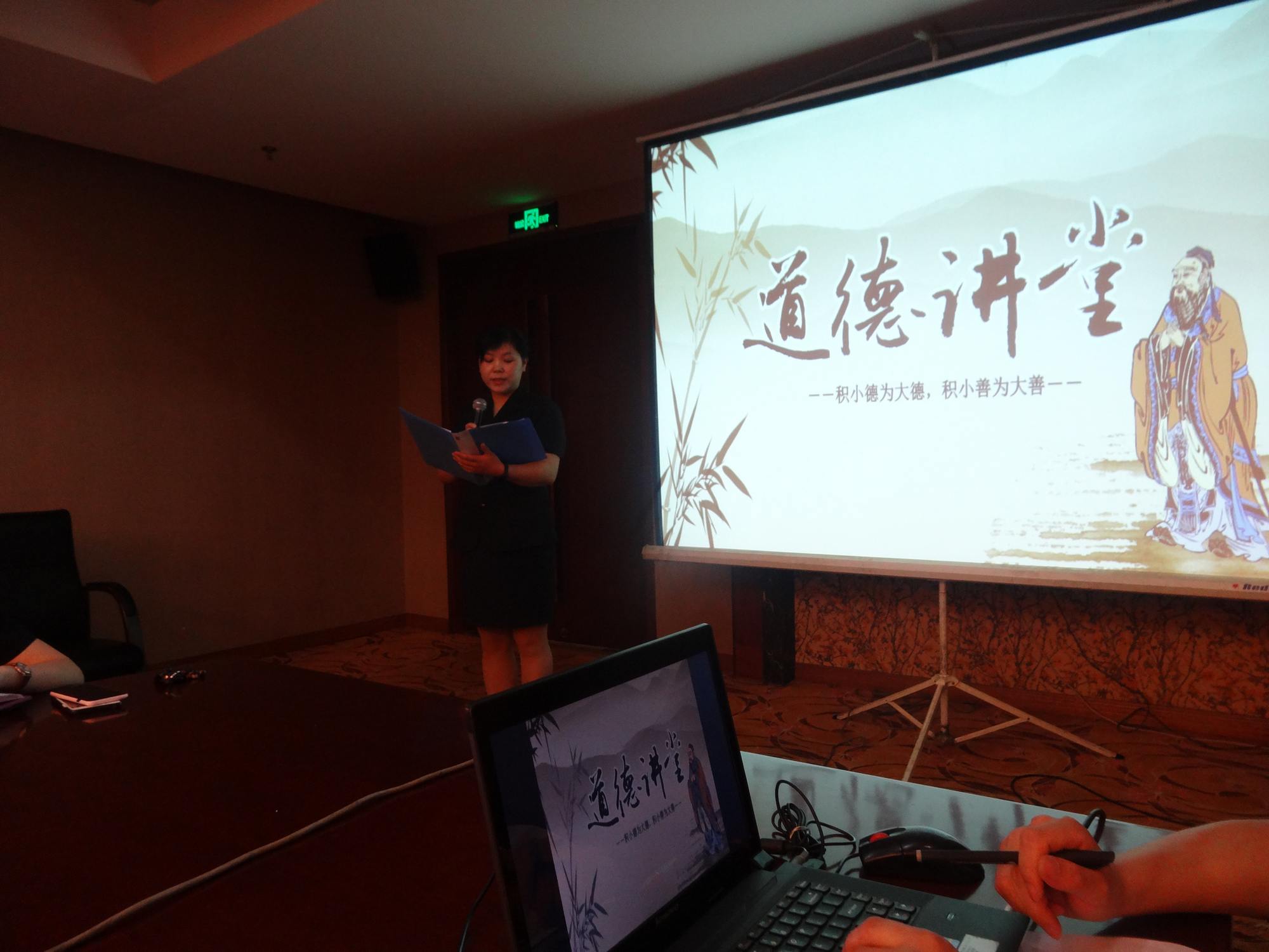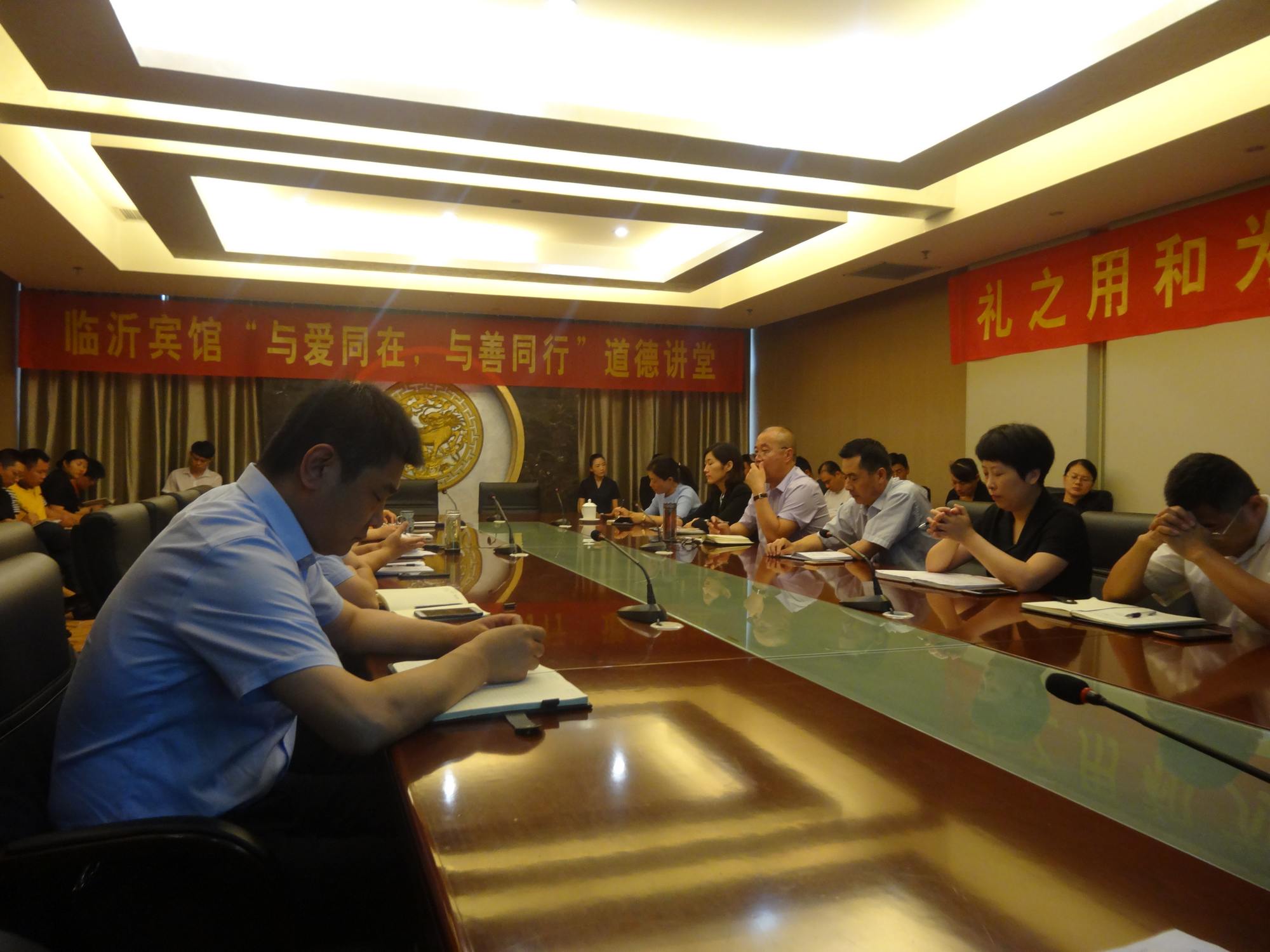 6月22日,臨沂賓館“與愛同在,與善同行”道德講堂在沂蒙路店第三會(huì)議室成功舉辦,臨沂賓館全體黨員、入黨積極分子及中層管理人員等50余人參加。 山東是孔孟故里,禮儀之邦,道德傳統(tǒng)源遠(yuǎn)流長(zhǎng),“善”是儒家文化的一個(gè)重要組成部分,臨沂賓館本期道德講堂突出“善良”這一中華民族傳統(tǒng)品德的重要權(quán)重,讓更多的人從自己做起、從身邊的小事做起,踐行善舉,傳播“崇德行善”的正能量。 本期道德講堂分為同唱道德歌曲、學(xué)習(xí)道德模范、誦讀中華經(jīng)典、談感悟發(fā)善心、行崇德禮等五個(gè)環(huán)節(jié)。本期學(xué)習(xí)的道德模范是2017年度感動(dòng)中國(guó)十大人物之一黃大年,其愛崗敬業(yè)、至誠(chéng)報(bào)國(guó)的高尚品質(zhì)讓在場(chǎng)的人感動(dòng)。然后,由臨沂賓館三名員工講述了發(fā)生在我們身邊的凡人善舉,其中沂蒙路店孫曉穎講述的是《身邊的好人——曹玉軍》,大學(xué)酒店肖瑤講述的是《愛心再接力,溫情暖人心》,開發(fā)區(qū)店孟靈芝講述的是《讓我們?cè)賹W(xué)張記磊》,從身邊小事中折射出的善良光輝給予了在場(chǎng)的每一個(gè)人極大的感染。誦讀中華經(jīng)典環(huán)節(jié),選取《論語》中的名句“禮之用和為貴,德不孤必有鄰”,讓大家共同感受到了儒家文化中對(duì)于道德的篤信推崇。唱過道德歌、看過道德視頻、聽過道德故事、誦讀了中華經(jīng)典,大家感悟良多并進(jìn)行了分享,也收獲了一份小禮品。最后,在行崇德禮之后,本期道德講堂圓滿結(jié)束。 本期道德講堂的成功舉辦,在弘揚(yáng)中華民族傳統(tǒng)文化中的“善”文化的同時(shí),讓每一位參與其中的人在潛移默化中感受到道德的力量,并以發(fā)生在我們身邊的好人好事為典型,呼吁更多的人參與到“發(fā)善心,行善舉”的行動(dòng)中,傳遞社會(huì)正能量,為我市創(chuàng)建全國(guó)文明城市營(yíng)造濃厚氛圍。(臨沂賓館 王本強(qiáng))