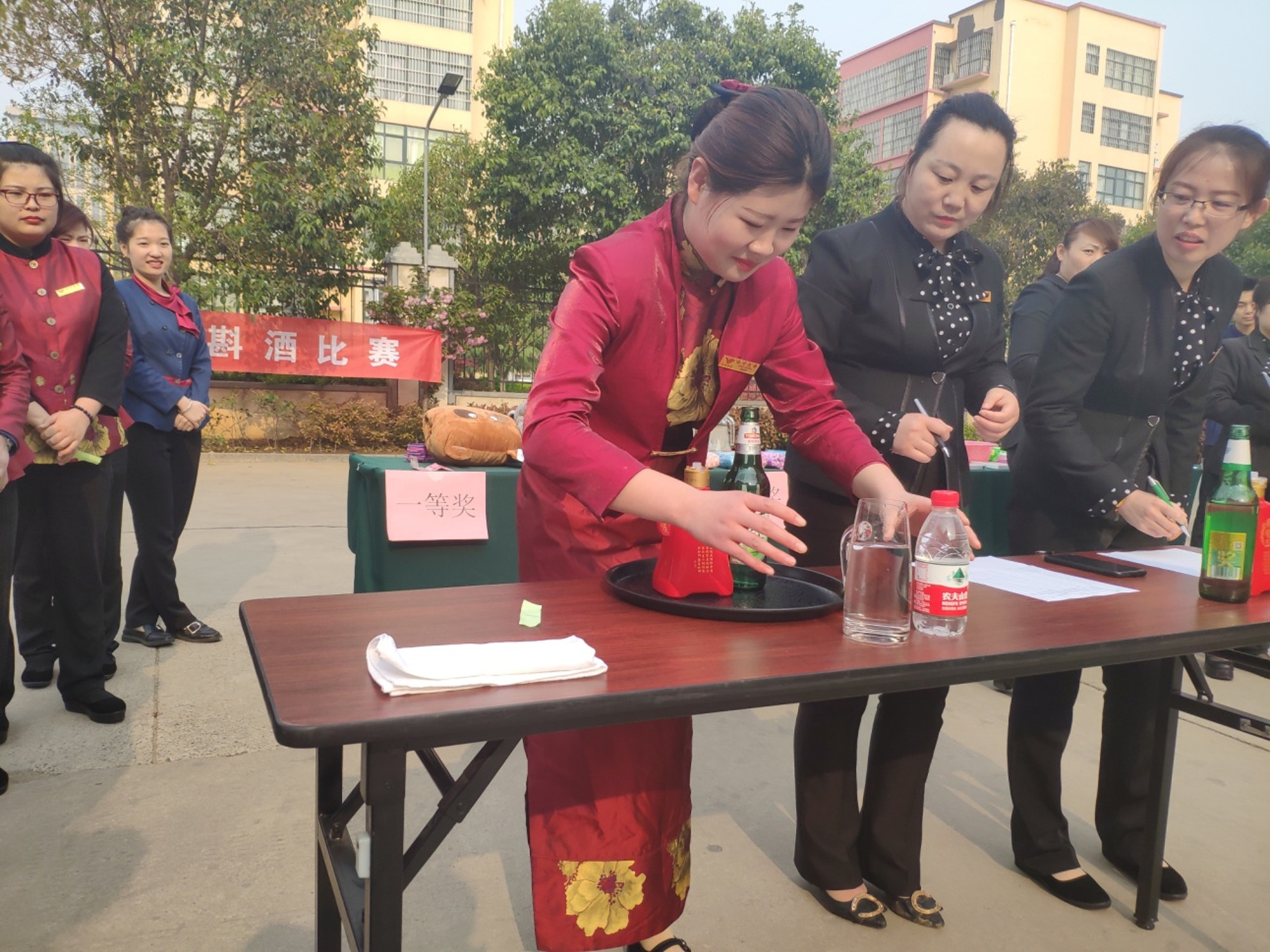 4月11日上午,臨沂賓館開發(fā)區(qū)店餐廳端托斟酒比賽在會議中心前停車場舉行。經(jīng)過一個半小時的比拼,最終彭曉敏獲得本次比賽一等獎、張瑤等3人獲得二等獎、付振云等5人獲得三等獎、王兆亮等6人獲得優(yōu)秀獎。 比賽前,參賽選手抽簽確定比賽順序,本次比賽模擬實際工作中的場景,參賽選手手端托盤,托盤內(nèi)擺放白酒、啤酒、紅酒、白開水等四種飲品,平穩(wěn)繞過障礙到達(dá)賓客右后側(cè),進(jìn)行斟倒酒水服務(wù)。評委由餐廳領(lǐng)班及以上管理人員擔(dān)任,通過參賽選手的服務(wù)規(guī)范、技能水平等方面進(jìn)行打分,確定最終比賽成績。 比賽活動的舉辦旨在激勵全體員工不斷提高自身技能水平和服務(wù)質(zhì)量,促進(jìn)經(jīng)濟(jì)效益的提升。(文圖/莊緒瀅)