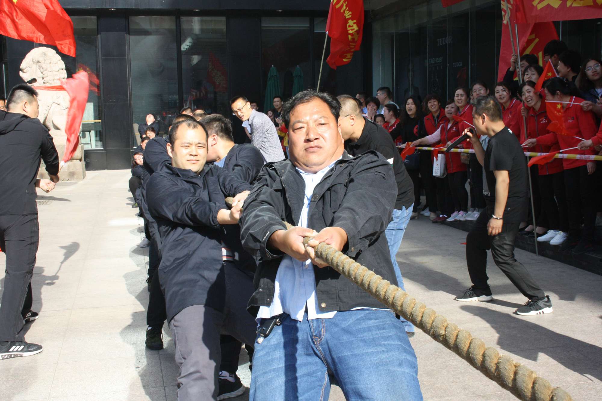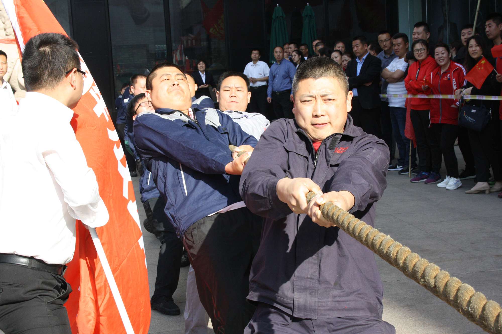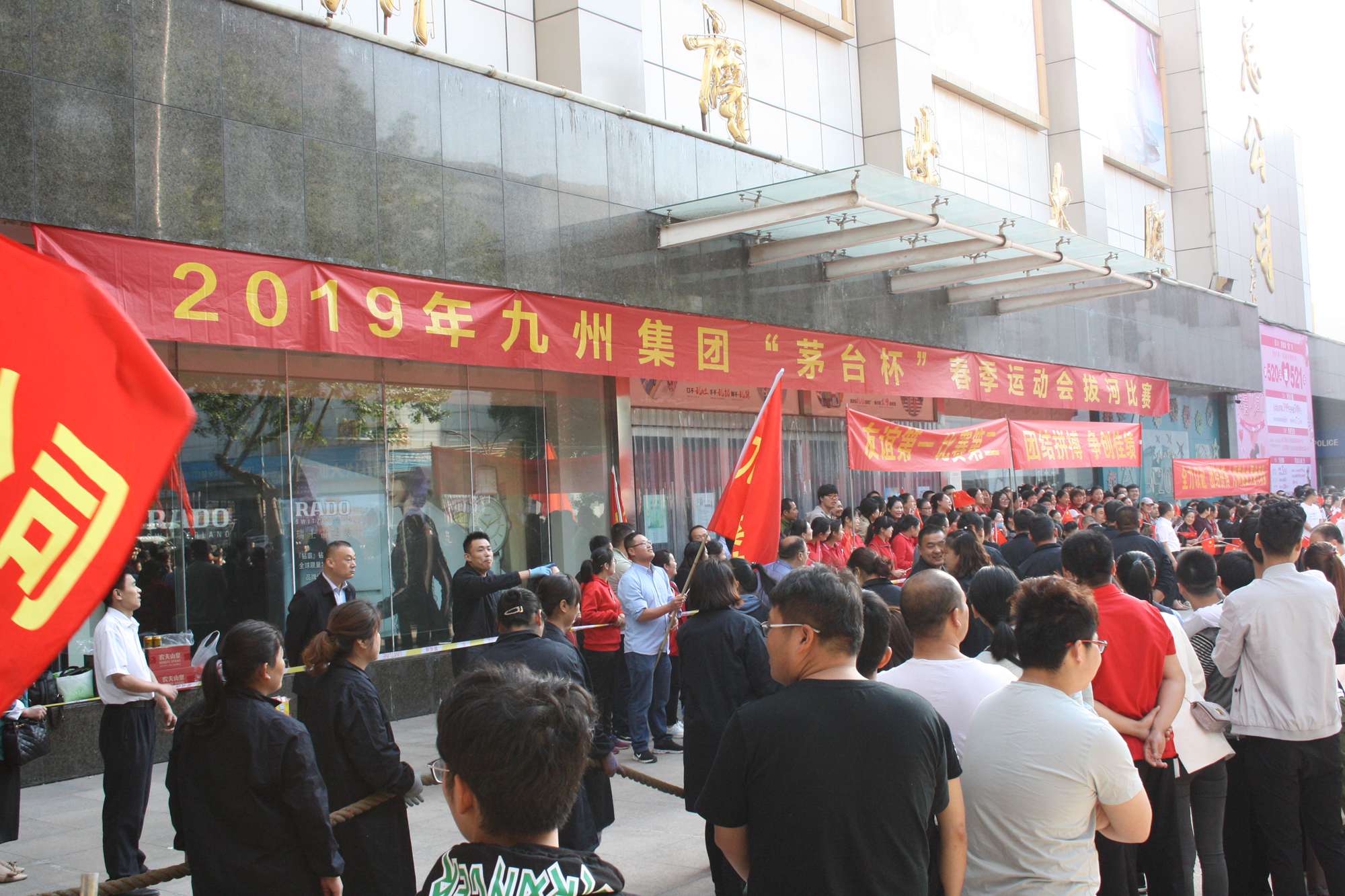 5月21日上午,九州集團2019年運動會拔河比賽項目在九州大廈解放路店門前廣場舉行。來自各經營單位和集團行政的六支代表隊參加了比賽。 整潔的街道,翠綠的樹木,清晨的城市少了喧嘩,多了一份安靜,此刻九州大廈門前廣場卻熱鬧非凡,比賽現(xiàn)場被激昂的標語環(huán)繞,每個人都熱情高漲。比賽尚未開始時,雙方參賽隊員就已經進入了戰(zhàn)斗狀態(tài),雙手緊握麻繩,雙腳用力著地,身體向后微傾,齊心協(xié)力擰成了一股繩。哨聲一響,雙方口號震天,有的隊員臉憋得通紅卻絲毫不放松,有的隊員干脆閉上眼睛卯足了勁兒往后拉。場下的啦啦隊也不甘落后,加油聲、吶喊聲、助威聲響徹四周。經過多輪比拼,臨沂賓館代表隊憑借強大的實力,嫻熟的比賽技術奪得冠軍,九州大廈代表隊和超市公司代表隊分獲亞軍和季軍,汽貿公司代表隊、九州家電代表隊和集團行政代表隊分獲第四、五、六名。(文/劉文靜)