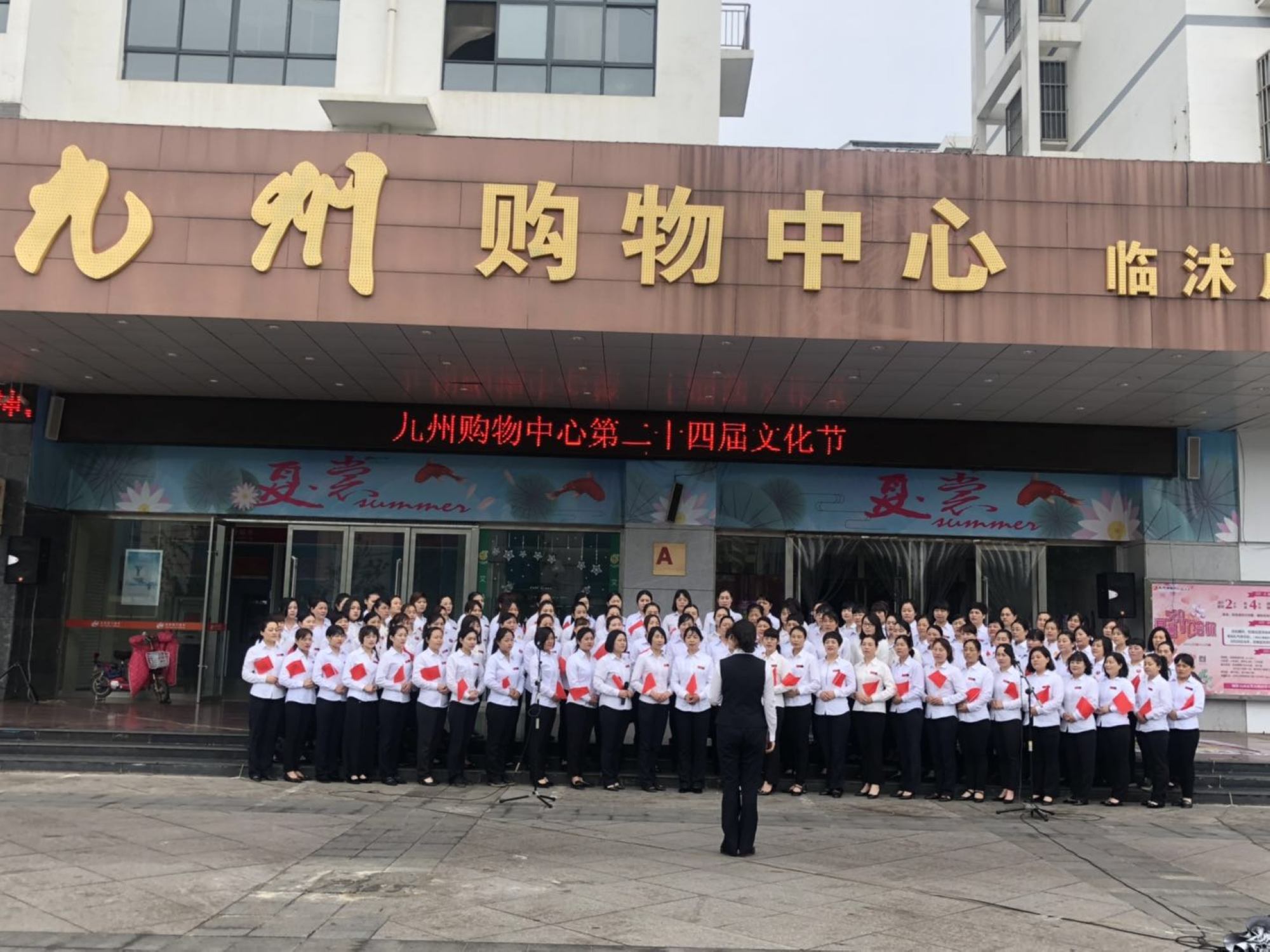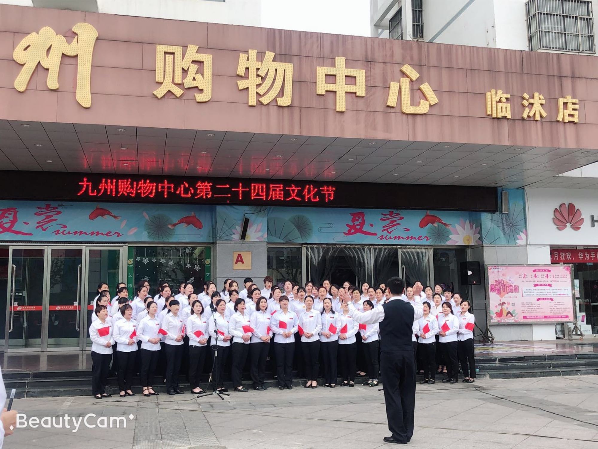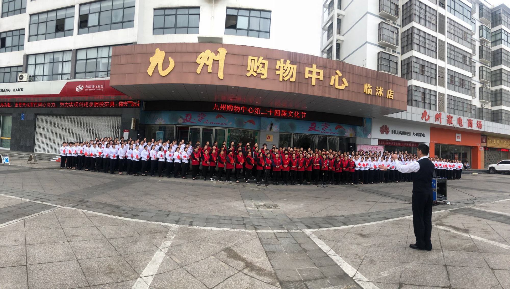 5月18日上午,九州大廈臨沭店在門(mén)前廣場(chǎng)舉行歌詠比賽。一大早,全體員工按照要求統(tǒng)一著裝,畫(huà)著精致的淡妝在門(mén)前廣場(chǎng)集合,為即將開(kāi)始的比賽做最后的排練。主持人認(rèn)真的背著主持詞,一遍一遍重復(fù)練習(xí)。