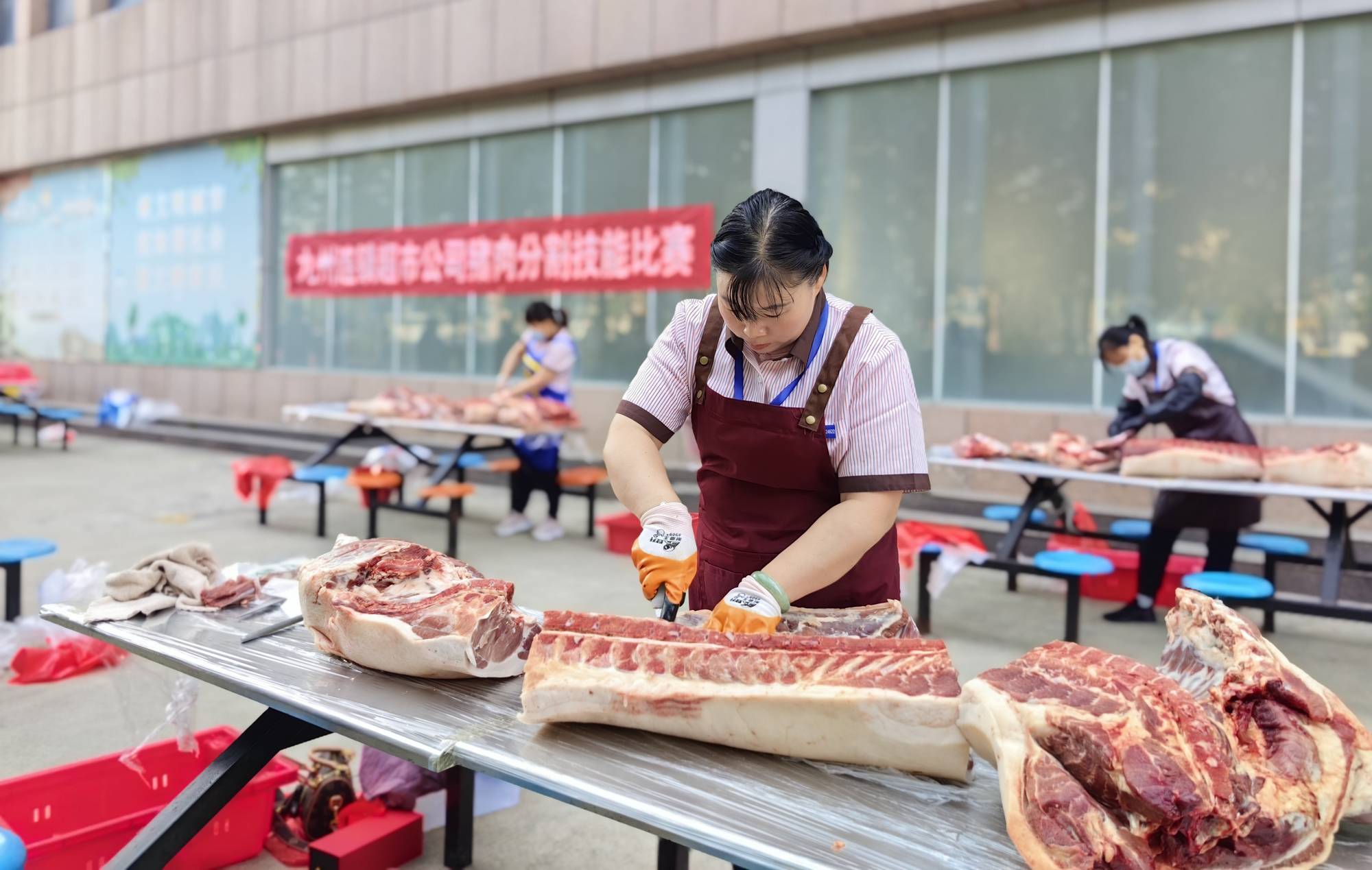 5月16日上午,超市公司在配送中心舉辦豬肉分割技能比賽,超市公司各門(mén)店共計(jì)34名員工參加。比賽現(xiàn)場(chǎng),選手根據(jù)比賽要求在盡可能短的時(shí)間內(nèi)完成對(duì)白條豬的剔骨、分割,考驗(yàn)員工刀工操作的熟練程度和對(duì)商品重量的精準(zhǔn)把握。經(jīng)過(guò)綜合比拼,購(gòu)物中心十里坊店沈繡芳獲得第一名,商城店徐坤獲得第二名,購(gòu)物中心河?xùn)|店劉玉霞獲得第三名。