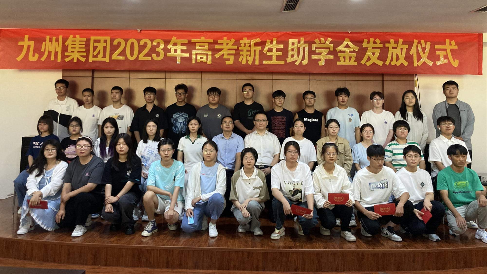 會上,為升入大學的職工子女頒發(fā)九州集團2023年高考助學金。本年度,集團共為91名升入大學的職工子女發(fā)放高考助學金共計23.5萬元。