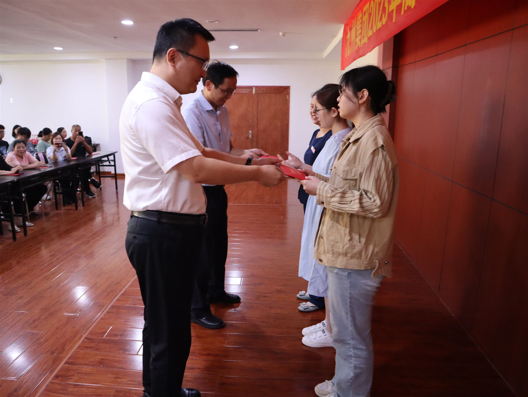 8月31日上午,九州集團2023年高考新生助學金發(fā)放儀式在九州商業(yè)大廈解放路店七樓會議室舉行,本年度升入大學的職工子女及職工參加,發(fā)放儀式由集團黨委副書記徐凱主持。