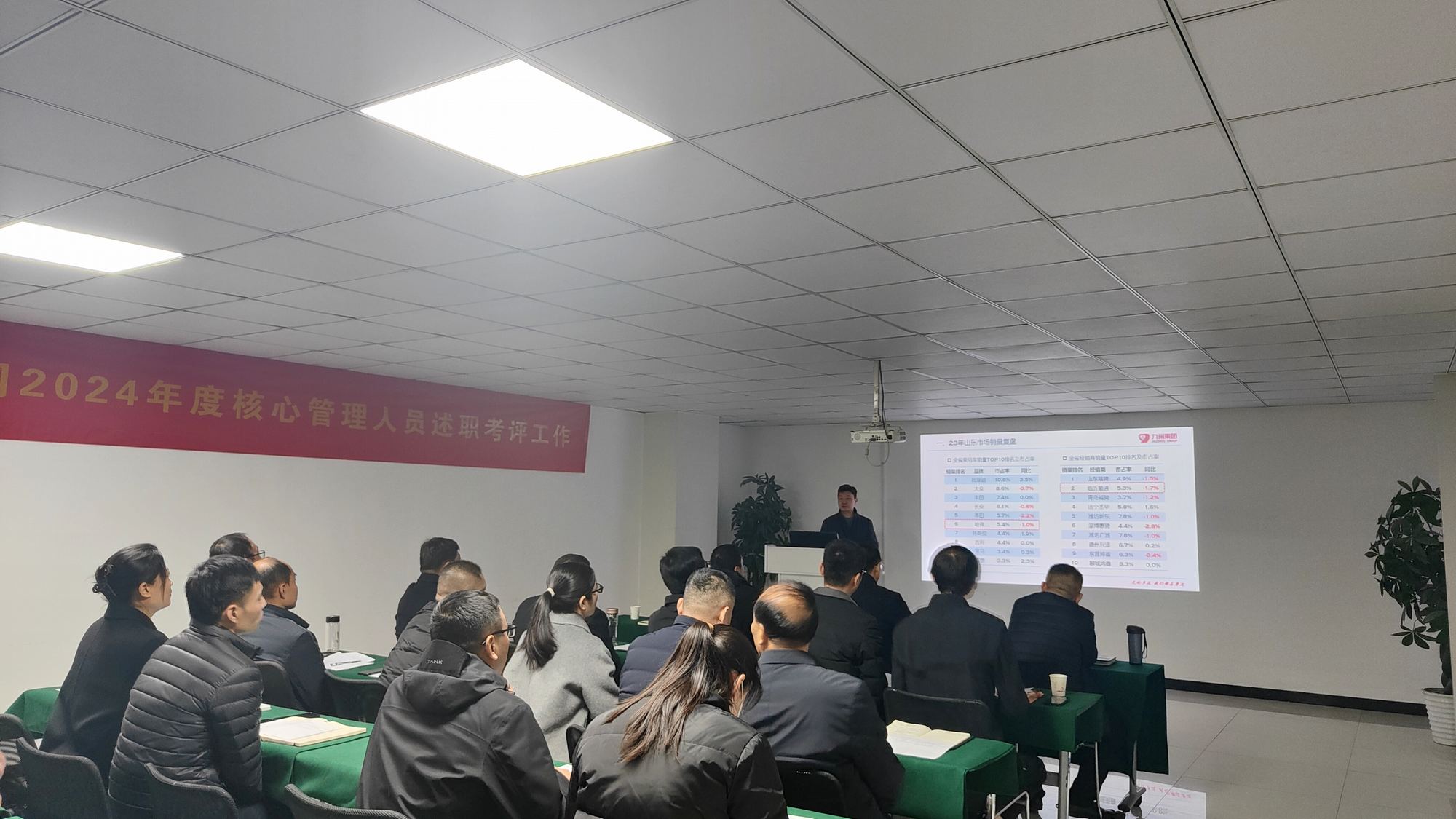 本次共有52名管理人員參與了述職考評。述職人員圍繞個人履職情況、存在的主要問題和整改措施、新年度工作計劃等方面進行闡述。
