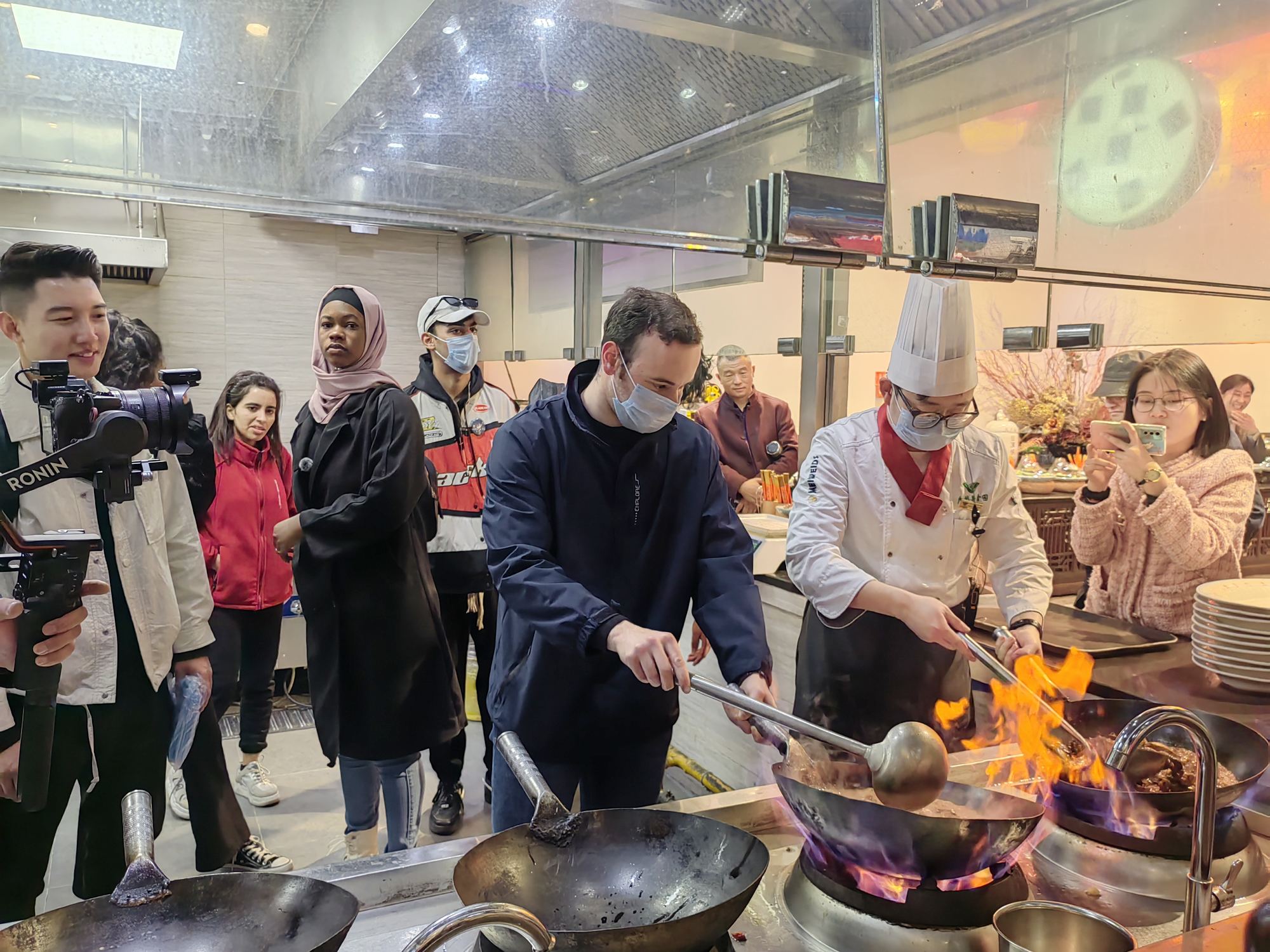 3月23日上午,由臨沂市委宣傳部、市外事辦主辦,蘭山區(qū)委宣傳部和金雀山街道協(xié)辦的在臨國際友人“感知新臨沂”活動(dòng)走進(jìn)臨沂賓館沂蒙路店九州美食園,了解和品嘗臨沂特色美食——臨沂炒雞。