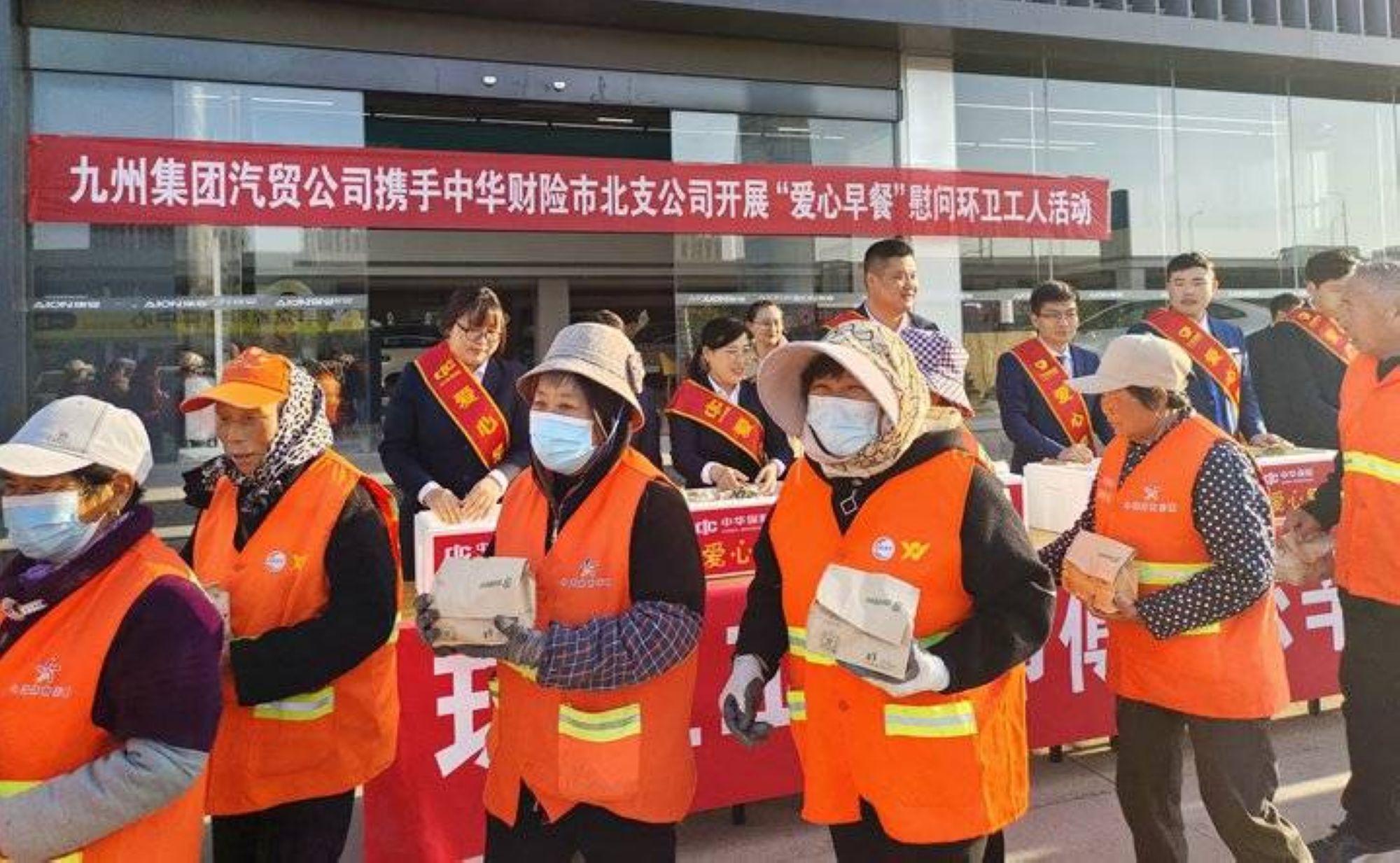九州汽貿(mào)組織開(kāi)展“愛(ài)心早餐”慰問(wèn)環(huán)衛(wèi)工人活動(dòng)