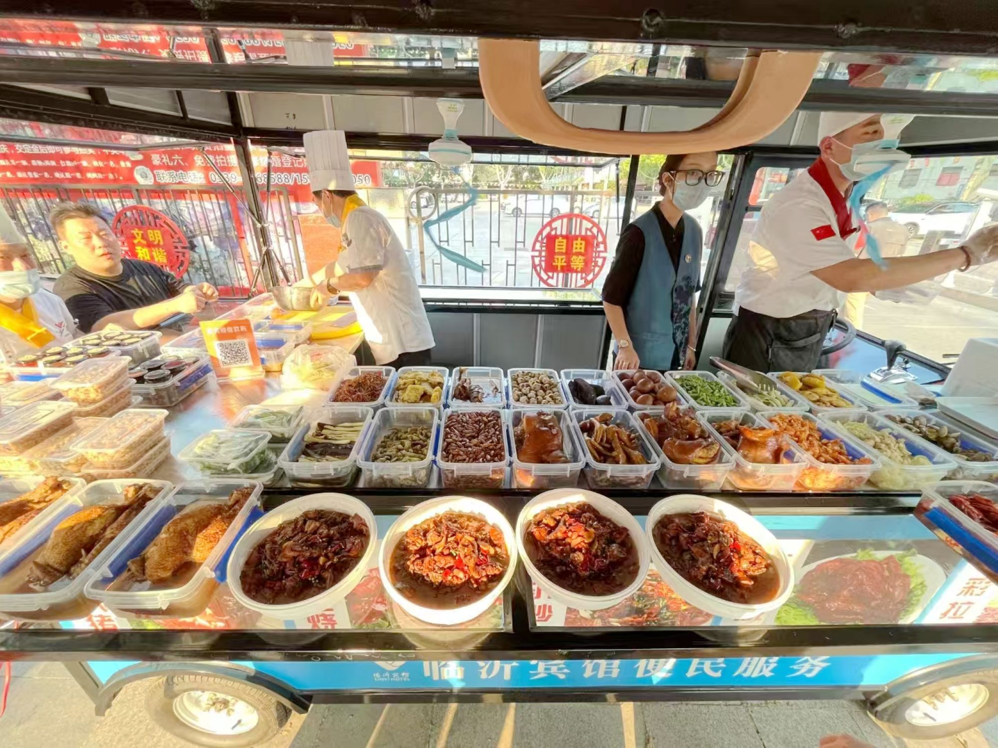 5月底,臨沂賓館沂蒙路店便民服務(wù)餐車正式亮相,每日下午5點(diǎn)30分至晚上8點(diǎn),餐車準(zhǔn)時(shí)在臨沂賓館沂蒙路店門前出攤,為過往市民帶來涼拌菜、鹵味、炸貨、熱炒菜等30余種特色美食。