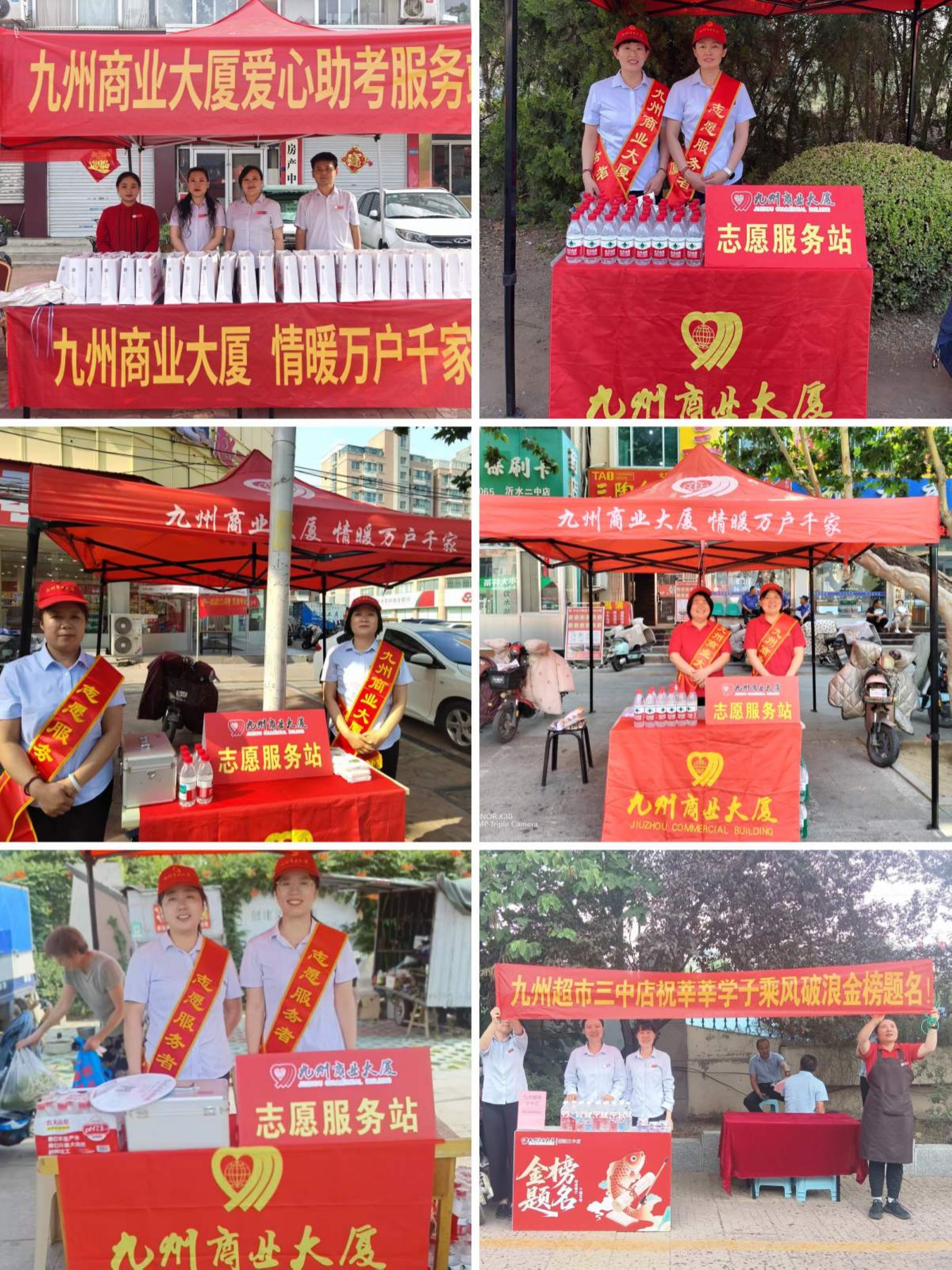 九州家電臨沭店組織黨員志愿者們在臨沭縣各主要考點周邊設立了“愛心助考服務站”。準備了2B 鉛筆、中性筆、橡皮等考試必備文具以及充足的礦泉水、藿香正氣水、風油精等防暑降溫用品,在炎炎夏日為大家送去清涼與關(guān)懷。