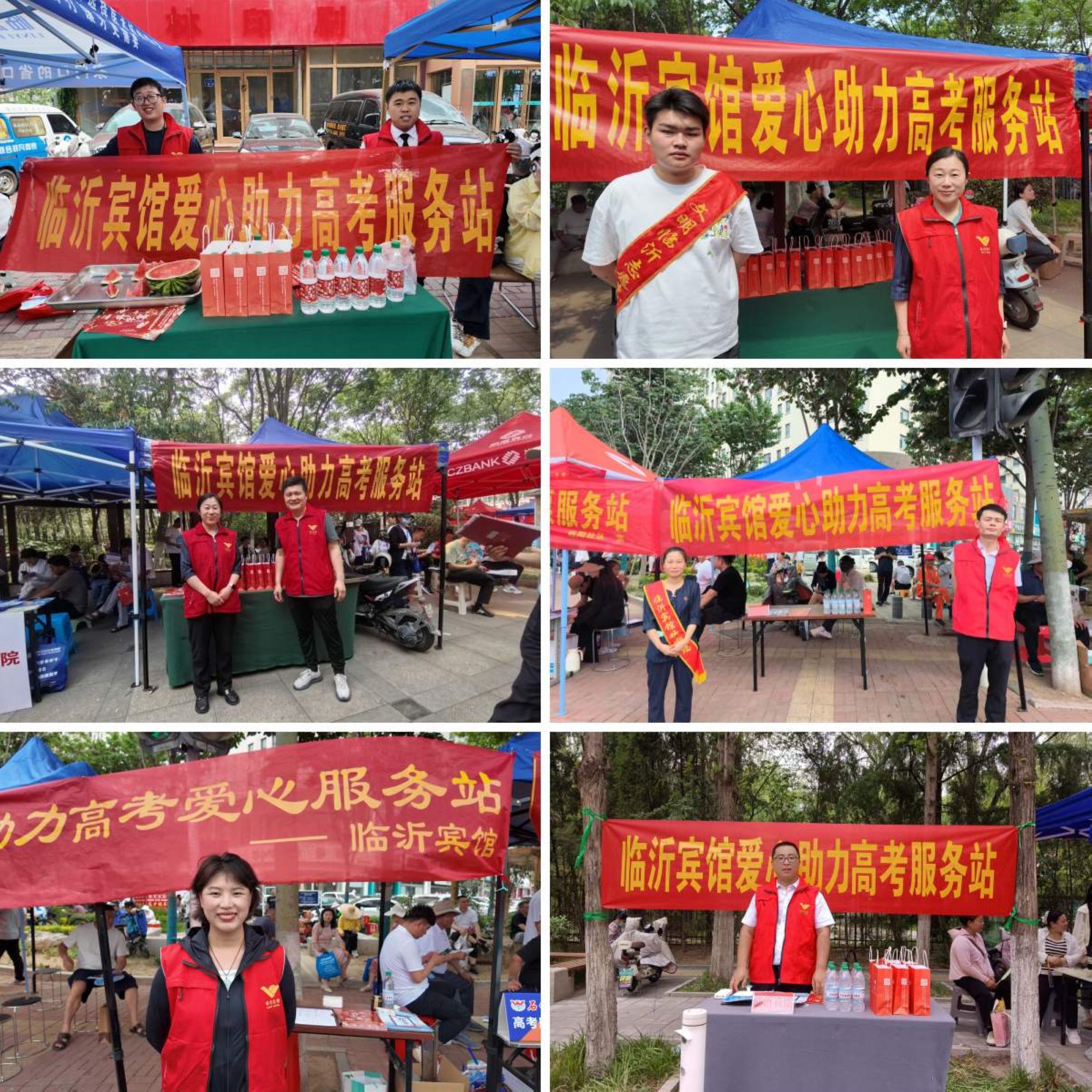 沂蒙路店在臨沂一中、臨沂二中及臨沂七中等考點設置了6個愛心助力高考服務站,免費為考生及家長提供礦泉水、西瓜、手工小點心等降溫解渴的物品。