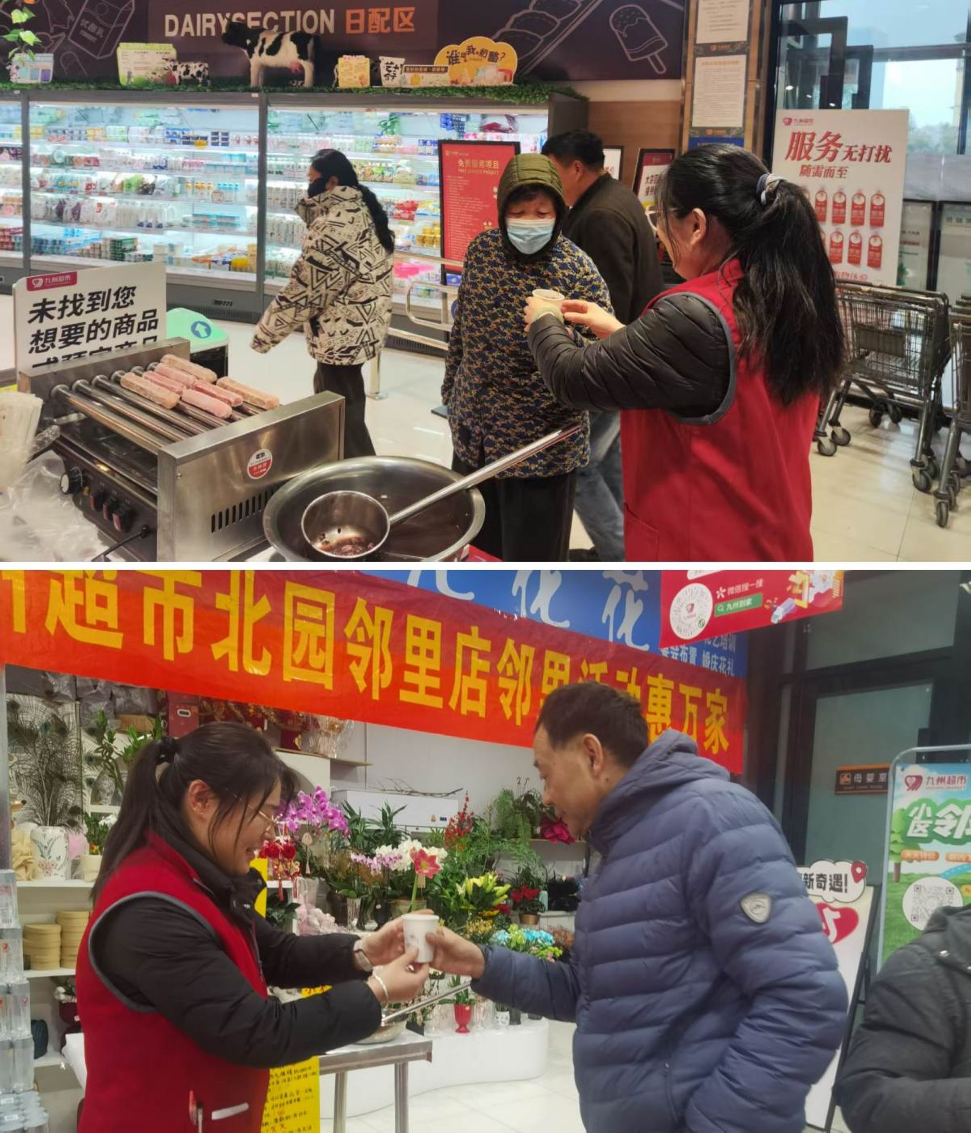 超市公司多家門店組織開展“臘八粥免費(fèi)喝”暖心活動(dòng),為到店的顧客送上香甜軟糯的臘八粥;顒(dòng)當(dāng)天,工作人員早早熬制好臘八粥,精心盛放在碗中,熱氣騰騰的粥散發(fā)著五谷的醇厚香氣,無論是前來購(gòu)物的老人、帶著孩子的家長(zhǎng),還是忙碌的上班族,都能免費(fèi)領(lǐng)取一碗臘八粥,在品嘗傳統(tǒng)美味的同時(shí),感受臘八節(jié)的民俗韻味。