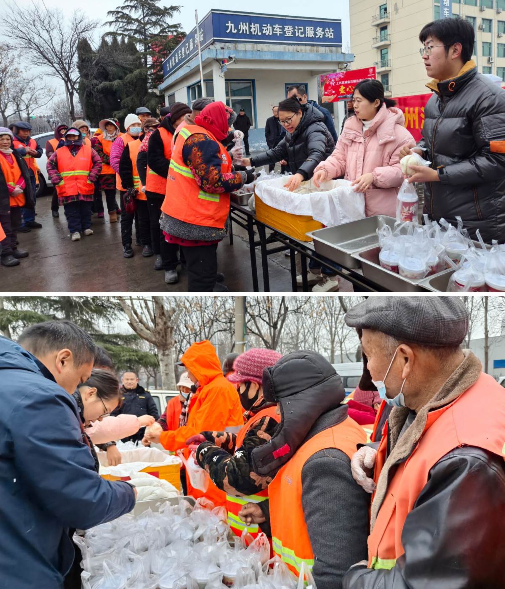 汽貿(mào)公司開展“情暖臘八 致敬環(huán)衛(wèi)”公益活動(dòng)。清晨,工作人員早早把精心熬制的臘八粥封裝打包,在公司西門口用保溫箱擺放好。結(jié)束一早工作的環(huán)衛(wèi)工人們陸續(xù)來到活動(dòng)現(xiàn)場(chǎng),工作人員為他們端上熱騰騰的臘八粥和早餐,并向他們致以美好的節(jié)日祝愿。