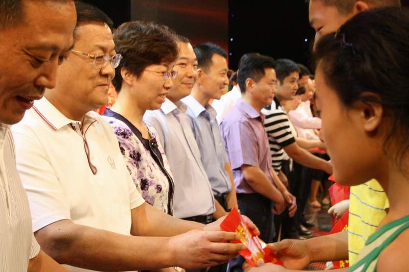 8月23日, 2012年臨沂市慈善助學(xué)晚會(huì)在臨沂電視臺(tái)演播大廳舉行。市委書記、市人大常委會(huì)主任張少軍,市人大常委會(huì)黨組書記、第一副主任杜德昌等市領(lǐng)導(dǎo)觀看晚會(huì)并為慈善助學(xué)愛(ài)心企業(yè)頒獎(jiǎng)。董事長(zhǎng)楊沂城等愛(ài)心企業(yè)負(fù)責(zé)人觀看晚會(huì)并為高考新生發(fā)放助學(xué)金。