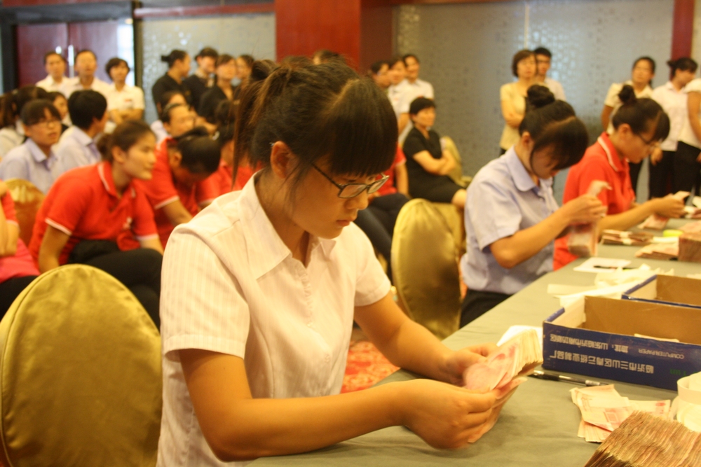 8月22日,集團(tuán)第三屆業(yè)務(wù)技能大賽錄入、點(diǎn)鈔項(xiàng)目決賽在臨沂賓館舉行。由各單位選撥推薦的120名員工分別參加了錄入和點(diǎn)鈔項(xiàng)目決賽。市總工會黨組成員、副主席張濤,集團(tuán)董事長楊沂城,黨委書記王佐文等出席本次活動(dòng)并為比賽獲獎(jiǎng)選手頒獎(jiǎng)。 本屆業(yè)務(wù)技能大賽共設(shè)33個(gè)比賽項(xiàng)目,自5月份起已陸續(xù)進(jìn)行20多個(gè)項(xiàng)目,錄入和點(diǎn)鈔是今年大賽中集團(tuán)統(tǒng)一項(xiàng)目,比賽前各單位和各部門在廣泛開展崗位練兵的基礎(chǔ)上,層層選拔,最終有60名員工參加集團(tuán)錄入決賽,60名員工參加集團(tuán)點(diǎn)鈔決賽。經(jīng)過激烈角逐,有2個(gè)單位分獲兩項(xiàng)團(tuán)體一等獎(jiǎng),有4個(gè)單位分獲兩項(xiàng)團(tuán)體二等獎(jiǎng),有6個(gè)單位分獲兩項(xiàng)團(tuán)體三等獎(jiǎng);有6名員工分獲兩項(xiàng)個(gè)人一等獎(jiǎng),有14名員工分獲兩項(xiàng)個(gè)人二等獎(jiǎng),有23名員工分獲兩項(xiàng)個(gè)人三等獎(jiǎng);有77名員工分獲兩項(xiàng)個(gè)人優(yōu)秀獎(jiǎng)。 開展“崗位練兵、技術(shù)比武”活動(dòng),是提高職工業(yè)務(wù)素質(zhì)水平、加強(qiáng)職業(yè)化隊(duì)伍建設(shè)的重要舉措,也是實(shí)現(xiàn)企業(yè)持續(xù)、健康、科學(xué)發(fā)展的重要途徑。廣大職工通過參加活動(dòng),不僅提高了本身業(yè)務(wù)技能,同時(shí)展示自身本領(lǐng)、挖掘自身潛能、強(qiáng)化了自身素質(zhì)。