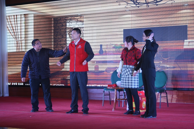 晚會在歡快、喜慶的舞蹈《歡聚一堂》中拉開帷幕,小品《請講普通話》,從一個(gè)側(cè)面反映了身處服務(wù)行業(yè)講普通話的重要性;音樂劇《我的未來不是夢》,引起了眾多年輕人的共鳴;《算盤舞》,古老的文化讓年輕的姑娘們演繹出了別樣的精彩;《春暖花開》,熱烈的場面,歡快的節(jié)奏,贏得了陣陣掌聲;小品《幸福來敲門》充滿深情的表演,講述了一個(gè)溫暖的故事……。這些員工自編自演的節(jié)目,貼近生活,聯(lián)系實(shí)際,引起了大家的共鳴,贏得了大家的好評,讓觀眾始終沉醉在喜慶歡樂的氛圍中。