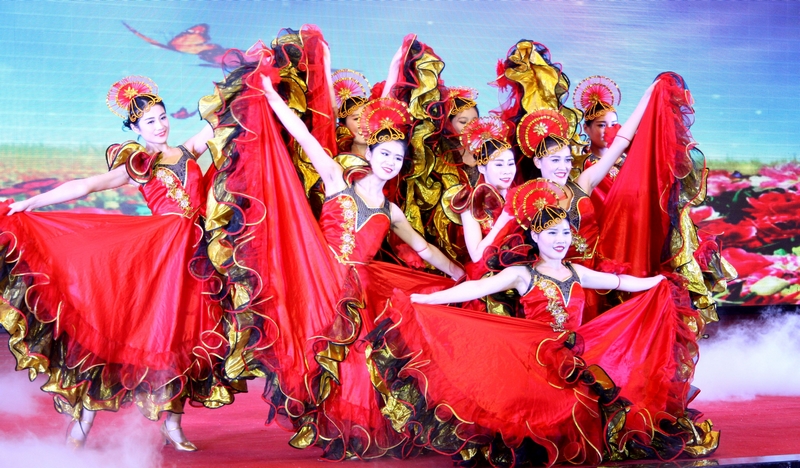 來自各單位的19個(gè)節(jié)目參加了晚會(huì)演出。歌伴舞《花開九州福滿園》拉開了晚會(huì)的序幕。舞蹈場面恢弘,大氣磅礴;小品貼近生活,詼諧幽默;獨(dú)唱歌聲優(yōu)美,熱情奔放。整場晚會(huì),舞蹈、小品、歌唱輪番亮相,內(nèi)容精彩紛呈,形式變化多樣。最后晚會(huì)在舞蹈《花開盛世看九州》中落下帷幕。