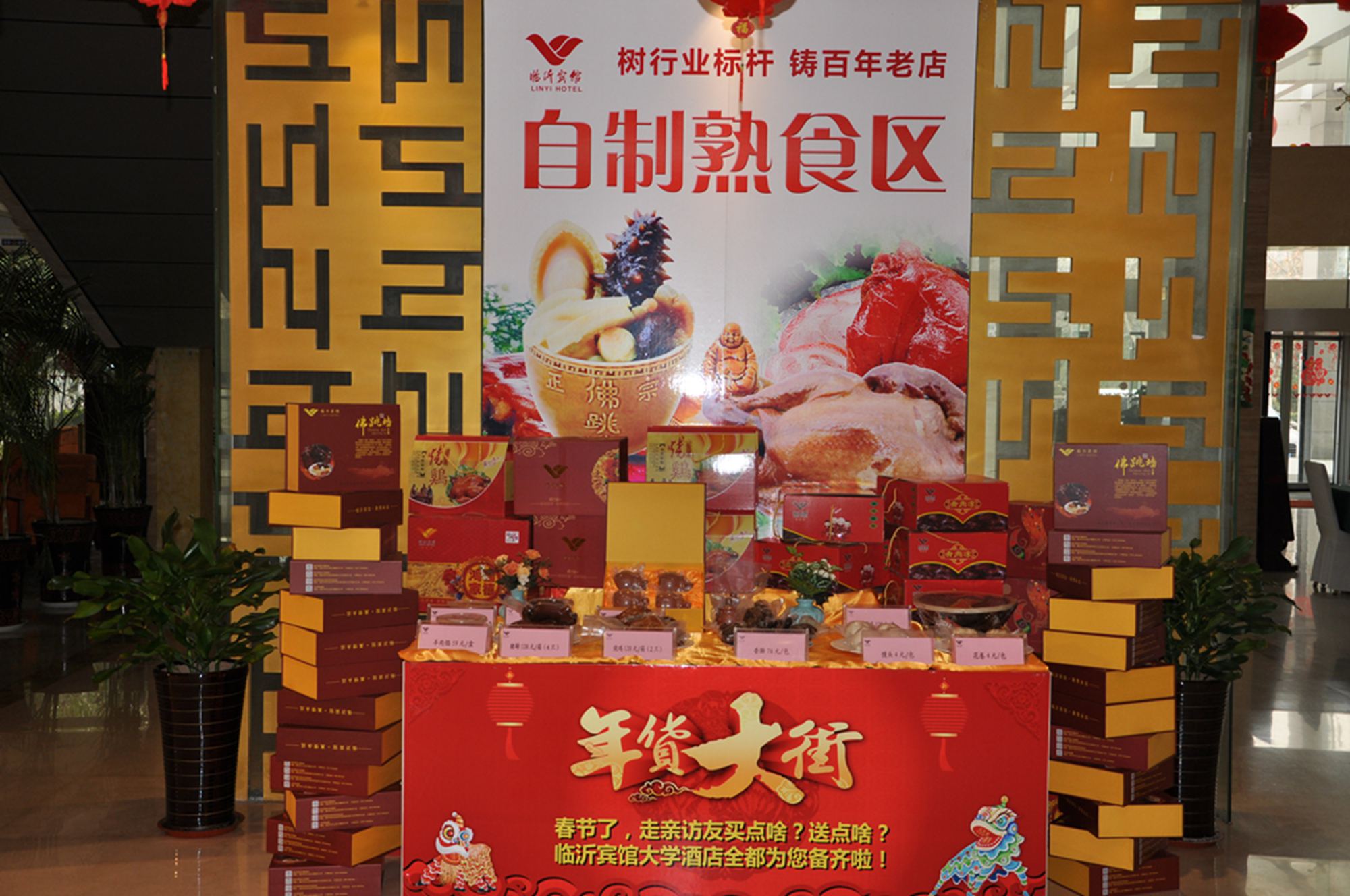 大學(xué)酒店年貨大街現(xiàn)已接受定制,只要您說(shuō)出您的需求,只有您想不到,沒(méi)有我們辦不到!還在等什么?快來(lái)臨沂賓館大學(xué)酒店逛逛吧!