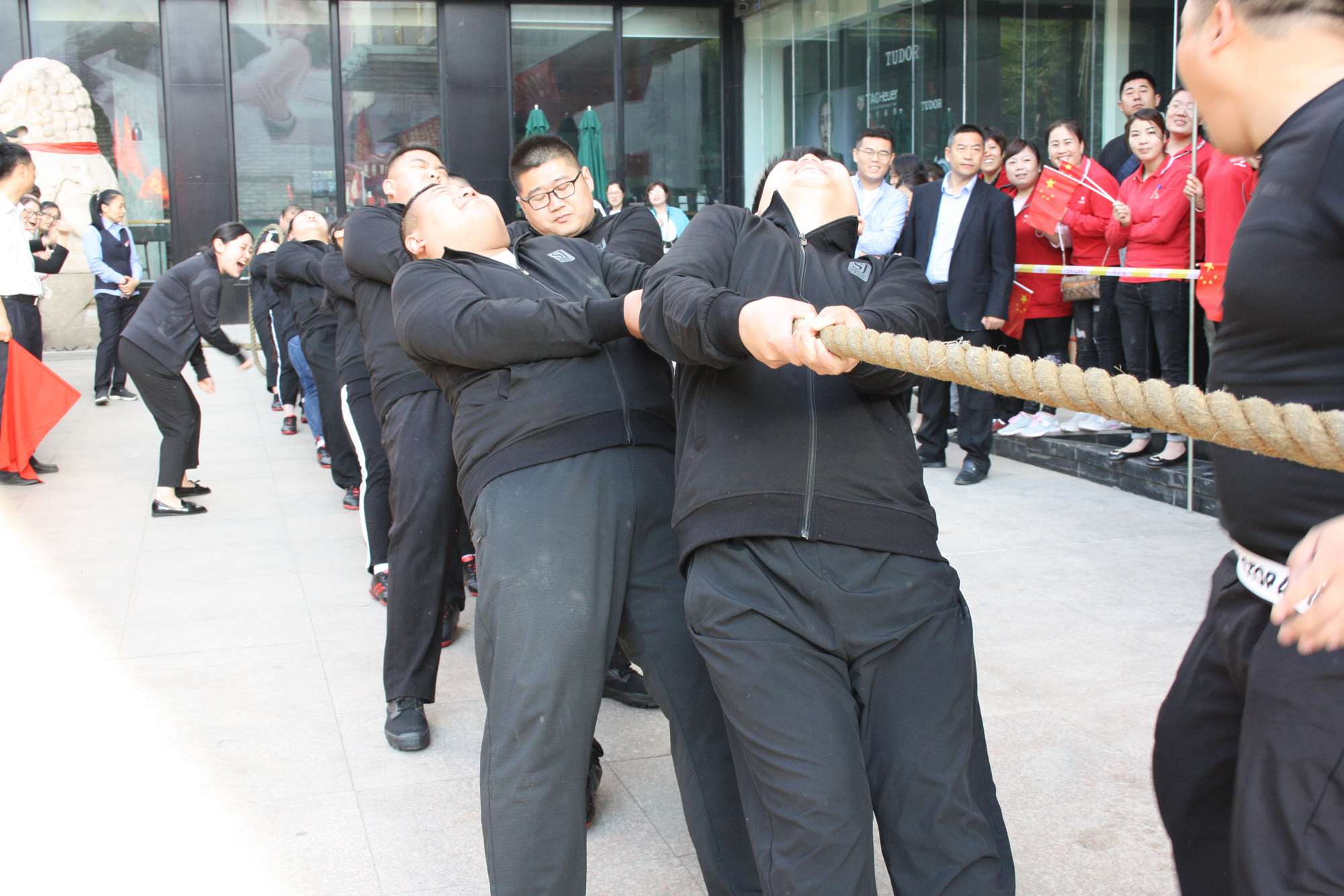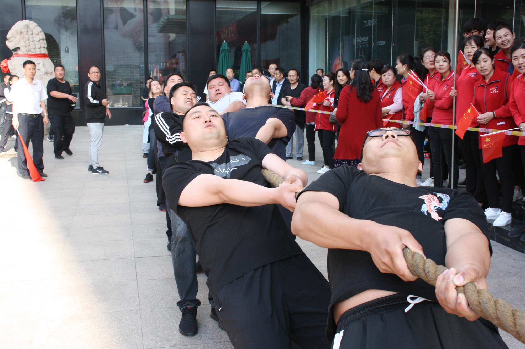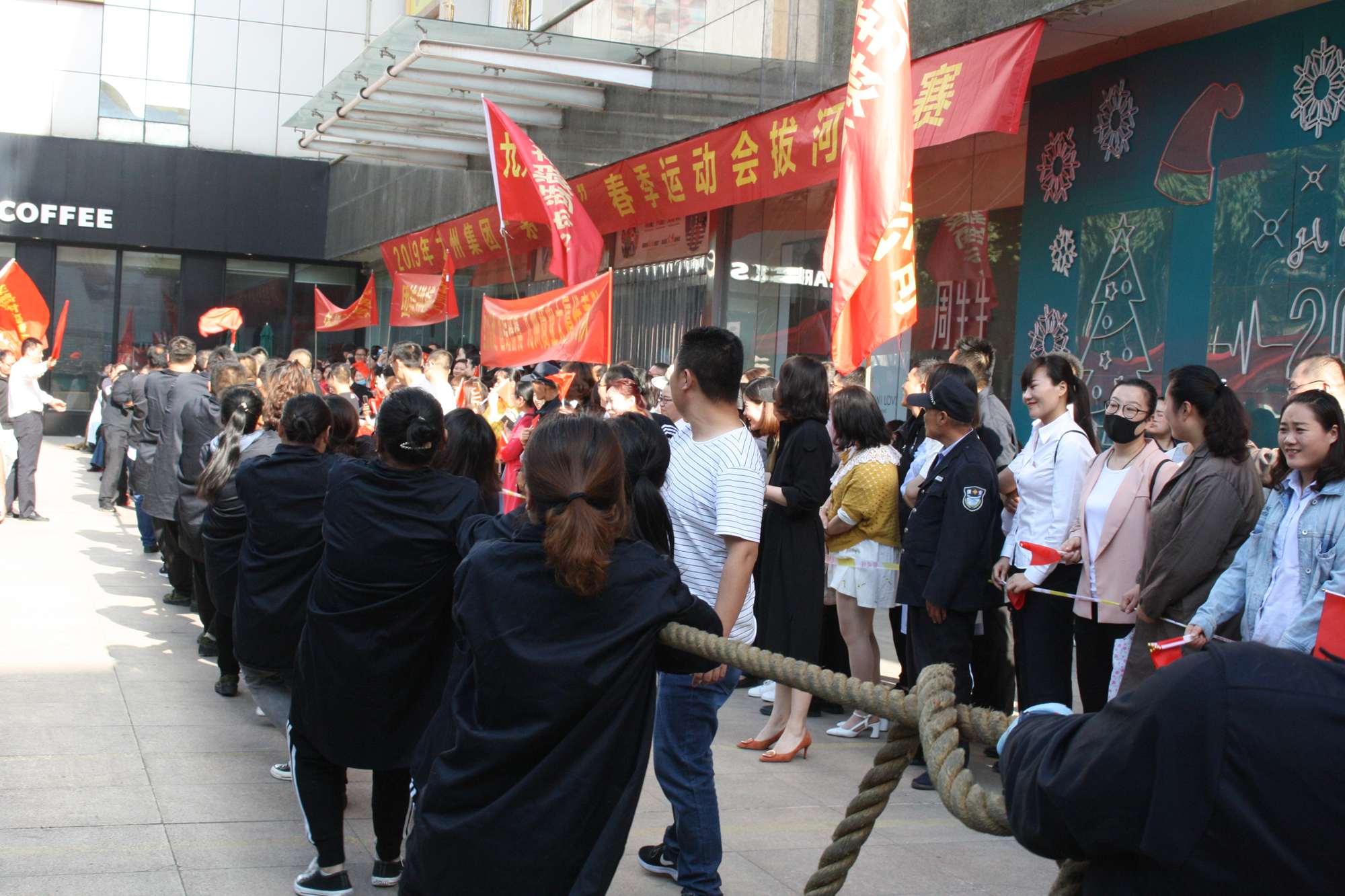 5月21日上午,九州集團2019年運動會拔河比賽項目在九州大廈解放路店門前廣場舉行。來自各經營單位和集團行政的六支代表隊參加了比賽。 整潔的街道,翠綠的樹木,清晨的城市少了喧嘩,多了一份安靜,此刻九州大廈門前廣場卻熱鬧非凡,比賽現(xiàn)場被激昂的標語環(huán)繞,每個人都熱情高漲。比賽尚未開始時,雙方參賽隊員就已經進入了戰(zhàn)斗狀態(tài),雙手緊握麻繩,雙腳用力著地,身體向后微傾,齊心協(xié)力擰成了一股繩。哨聲一響,雙方口號震天,有的隊員臉憋得通紅卻絲毫不放松,有的隊員干脆閉上眼睛卯足了勁兒往后拉。場下的啦啦隊也不甘落后,加油聲、吶喊聲、助威聲響徹四周。經過多輪比拼,臨沂賓館代表隊憑借強大的實力,嫻熟的比賽技術奪得冠軍,九州大廈代表隊和超市公司代表隊分獲亞軍和季軍,汽貿公司代表隊、九州家電代表隊和集團行政代表隊分獲第四、五、六名。(文/劉文靜)