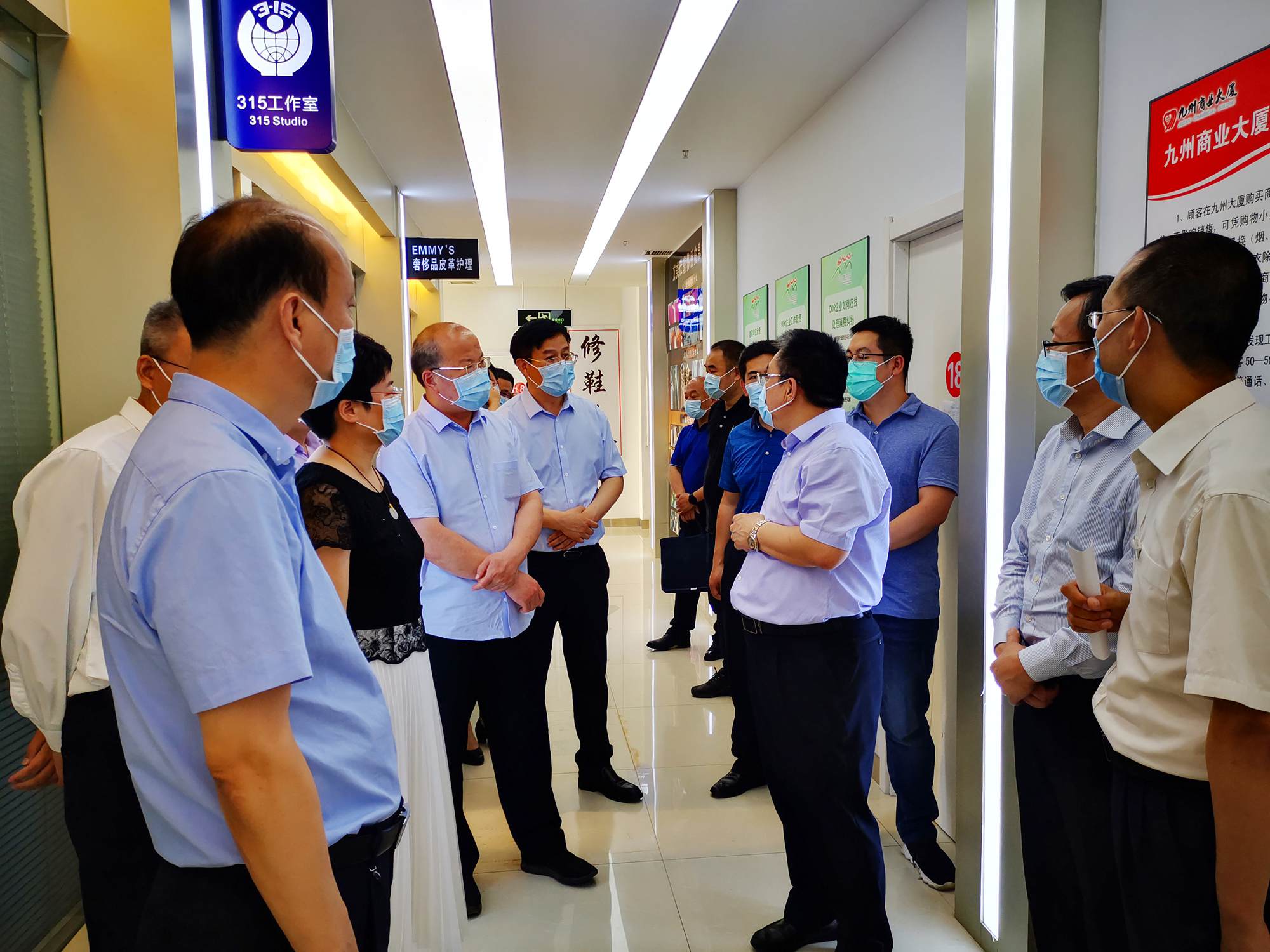 6月3日上午,省市場(chǎng)監(jiān)管局網(wǎng)監(jiān)處處長(zhǎng)趙風(fēng)勇、市市場(chǎng)監(jiān)管局局長(zhǎng)黃杰、區(qū)政協(xié)主席李玉華、區(qū)委副書記李春仲、副區(qū)長(zhǎng)王翠寶一行到九州大廈調(diào)研“放心消費(fèi)在山東”創(chuàng)建工作。集團(tuán)董事長(zhǎng)、總經(jīng)理?xiàng)钣罇|,九州大廈總經(jīng)理馮其艷等陪同。