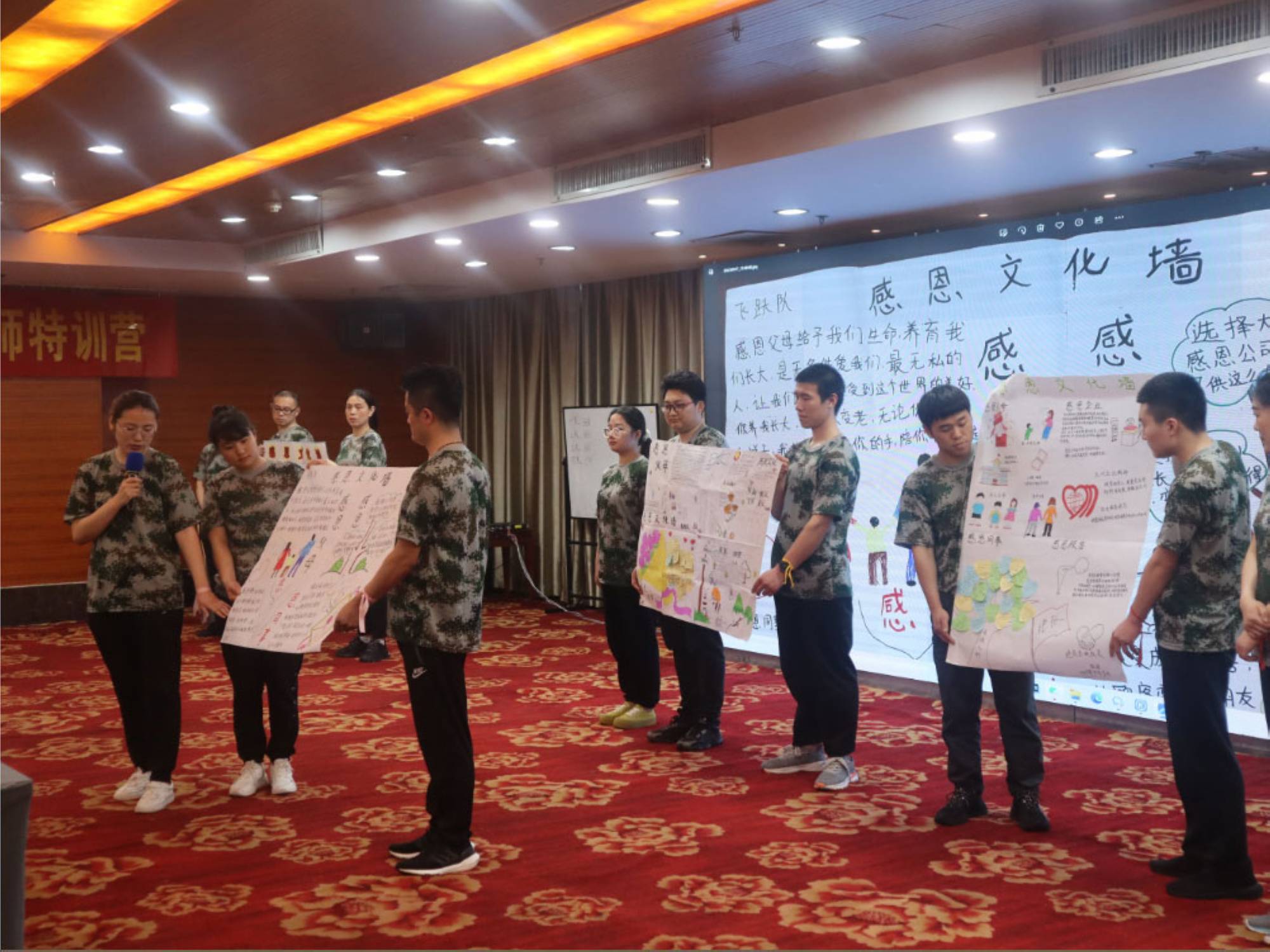 在三天兩夜的培訓(xùn)中,各組通過(guò)團(tuán)隊(duì)建設(shè)、項(xiàng)目錘煉來(lái)突破自我、逐漸融合,打造團(tuán)隊(duì)凝聚力。在“我是誰(shuí)”環(huán)節(jié),每位隊(duì)員挖掘自身的缺點(diǎn)、短板,直面自身的不足,消除前進(jìn)道路上的阻礙。在“感恩”環(huán)節(jié),通過(guò)場(chǎng)景設(shè)置,讓隊(duì)員體會(huì)父母的養(yǎng)育之恩、企業(yè)的培育之情,感恩父母、感恩企業(yè),做一名懂得感恩的人。在“領(lǐng)袖風(fēng)采”環(huán)節(jié),各隊(duì)依次從1至100報(bào)數(shù),發(fā)生錯(cuò)報(bào)、漏報(bào)、搶報(bào)等情況即懲罰隊(duì)長(zhǎng),讓隊(duì)員體驗(yàn)在日常工作中管理人員所承擔(dān)的責(zé)任。在“人行榜樣”環(huán)節(jié),隊(duì)員兩兩相對(duì),雙手相互舉高支撐,站立90分鐘,隊(duì)員之間相互鼓勵(lì),把簡(jiǎn)單的工作長(zhǎng)時(shí)間堅(jiān)持做好,打造堅(jiān)持不放棄的團(tuán)隊(duì)。在“AB穿越”環(huán)節(jié),隊(duì)員們?yōu)閷?shí)現(xiàn)目標(biāo),開(kāi)拓思維、大膽創(chuàng)新。在“同心桿”環(huán)節(jié),各隊(duì)統(tǒng)一動(dòng)作、統(tǒng)一標(biāo)準(zhǔn),克服團(tuán)隊(duì)干擾,打造標(biāo)準(zhǔn)一致、行動(dòng)一致的團(tuán)隊(duì)。