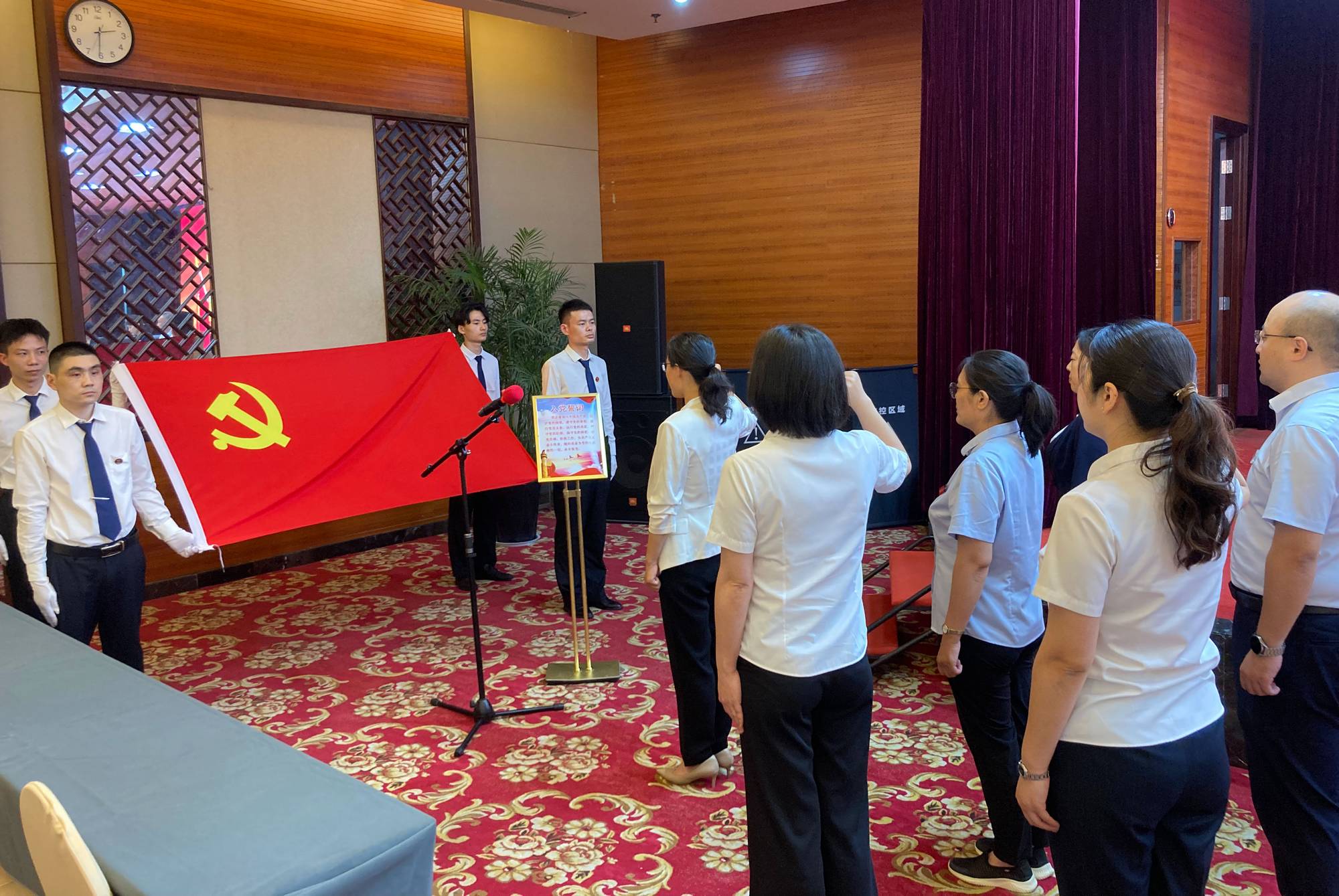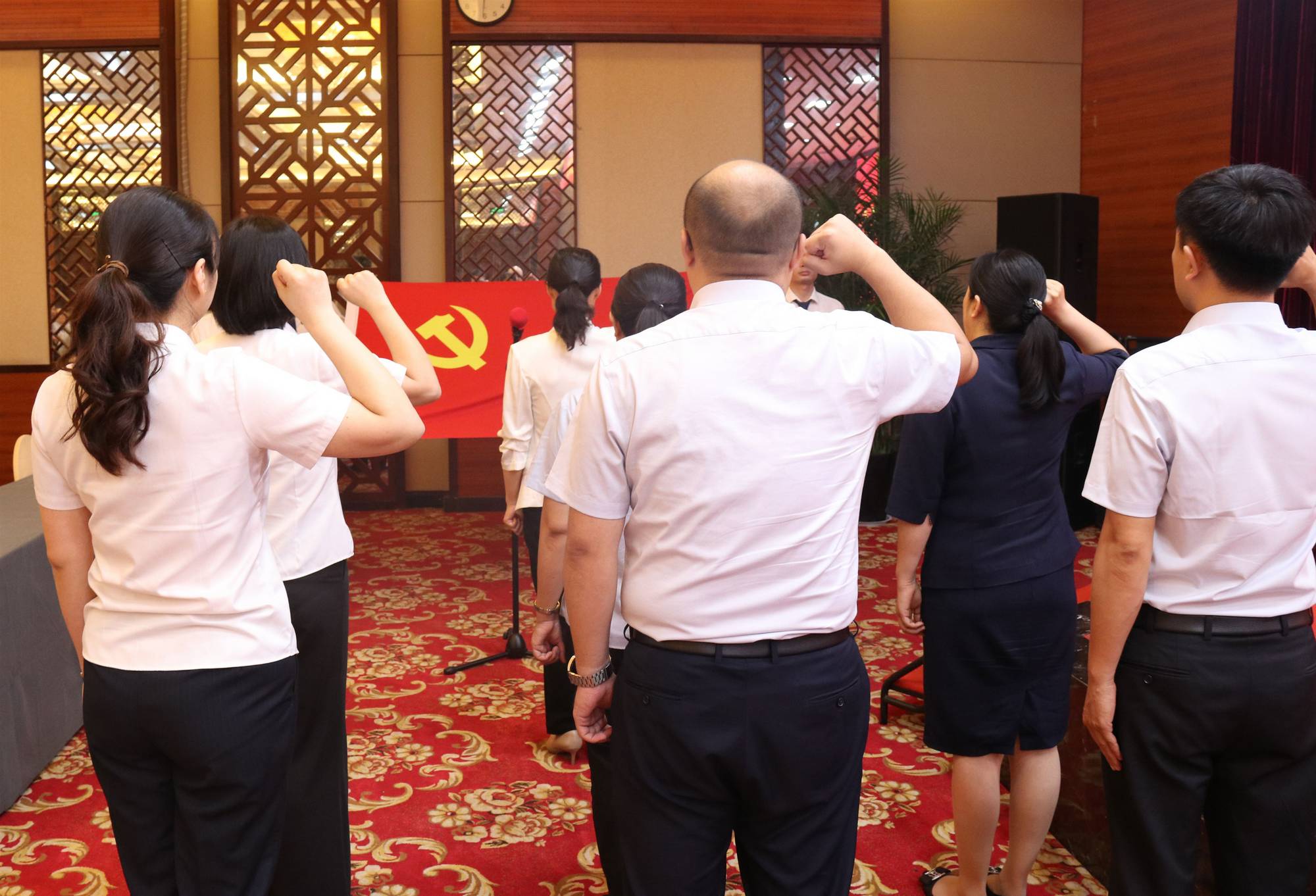 會(huì)議在雄壯的國(guó)歌聲中拉開(kāi)帷幕。會(huì)上,集團(tuán)黨委副書(shū)記、紀(jì)委書(shū)記王姣帶領(lǐng)集團(tuán)6名新發(fā)展黨員面向黨旗莊嚴(yán)宣誓,錚錚誓言、字字鏗鏘,傳遞著每一位新發(fā)展黨員為黨的事業(yè)奮斗終身的決心。