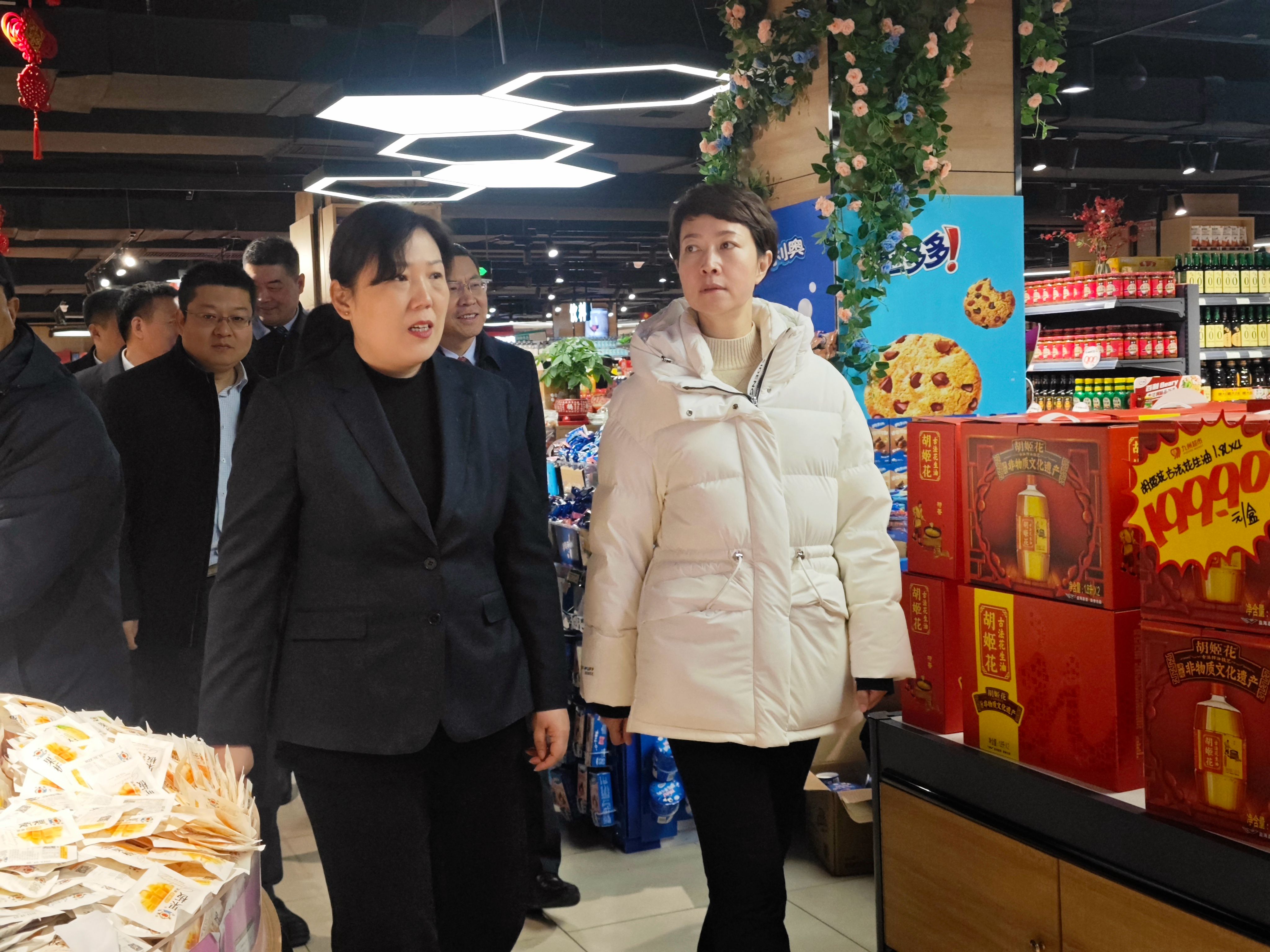 2月6日上午,河?xùn)|區(qū)委副書記、區(qū)政府區(qū)長(zhǎng)、黨組書記田婷婷一行到九州購(gòu)物中心河?xùn)|店調(diào)研春節(jié)市場(chǎng)保供工作。超市公司副總經(jīng)理、九州購(gòu)物中心河?xùn)|店店長(zhǎng)趙艷慧全程陪同。