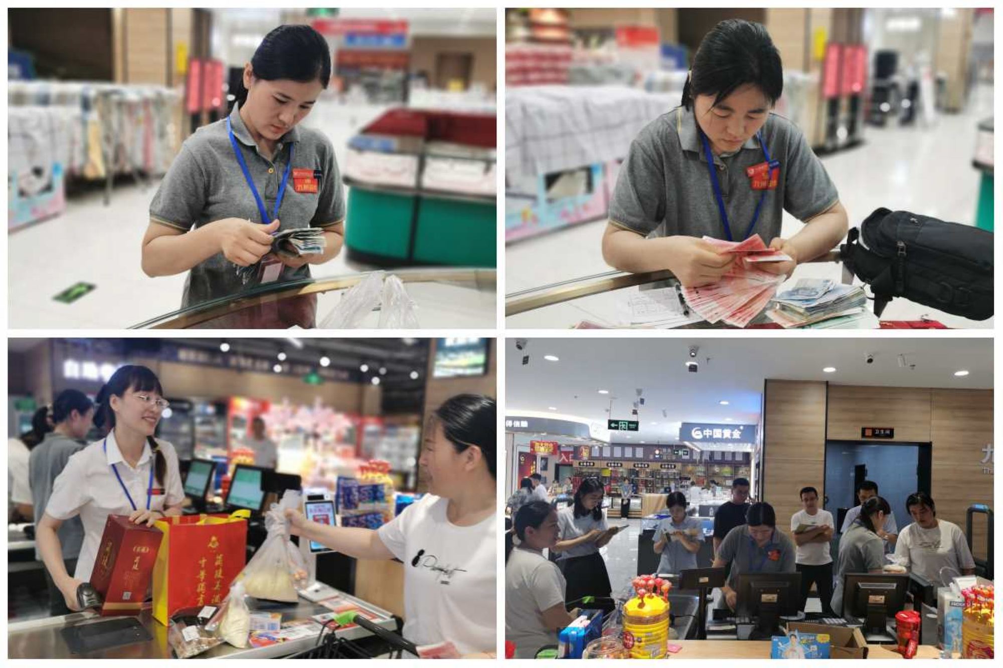 7月25日上午,超市公司在十里坊店舉辦了收銀員技能比賽,公司各門店共38名員工參賽。參賽選手需要在規(guī)定的時間內(nèi)完成筆試答題、點鈔辨?zhèn)巍⑻顚懡豢顔魏屯暾氖浙y流程,考察收銀員對收銀相關(guān)知識的掌握情況、對突發(fā)情況的應(yīng)急處理能力和對客服務(wù)接待能力。最終,站前店楊慶潔、李公河店莊艷香、埠東濱河店康昆分別獲得本次比賽的前三名。