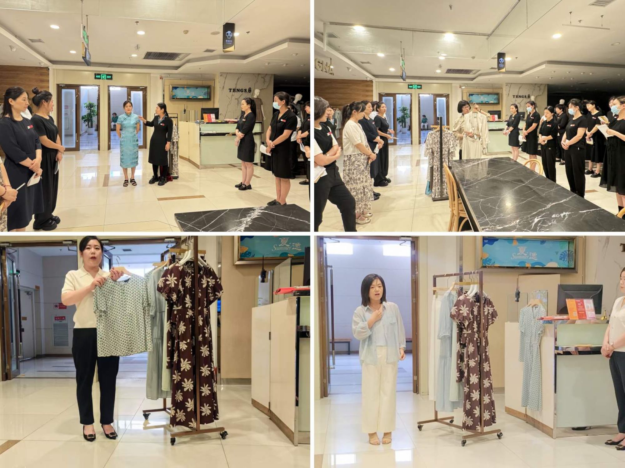 每日晨會伊始,來自不同專柜的員工便化身“穿搭講師”,精心挑選當(dāng)季熱門單品,從基礎(chǔ)款針織衫到潮流連衣裙,通過現(xiàn)場展示與實操搭配,演繹同一件服裝在不同場景下的多樣可能,同時,結(jié)合不同商品的色彩呼應(yīng)、材質(zhì)碰撞、風(fēng)格融合等搭配邏輯生動詮釋了“一衣多穿”的魅力。在良好的交流氛圍中,大家分散思維、各抒己見,每日高頻次、小體量的分享,讓員工在碎片化時間中積累知識,共同進步。