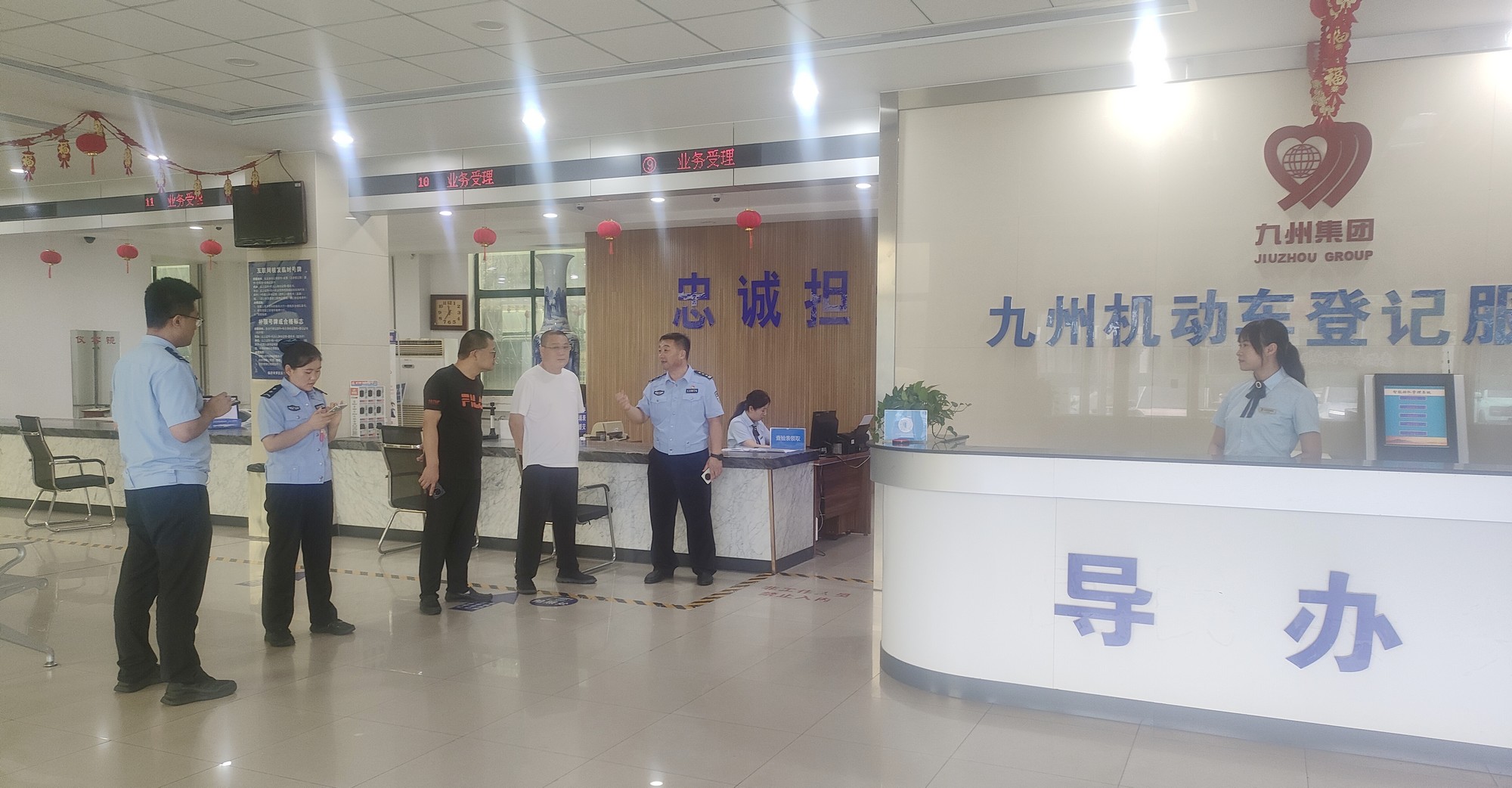 8月13日,市車管所直屬二分所科長王來賓一行到九州機動車登記服務站視察工作,九州機動車登記服務站負責人陪同。