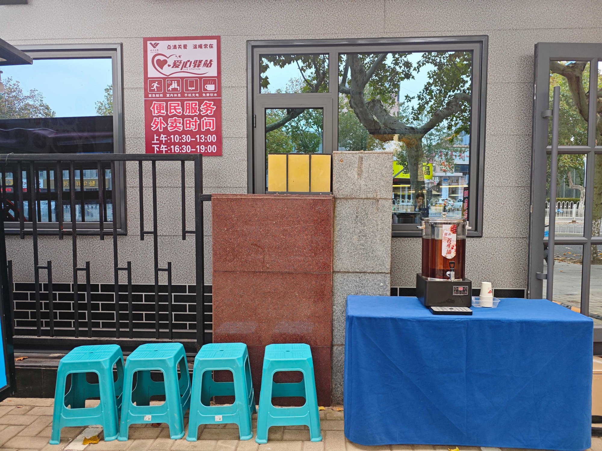 此外,沂蒙路店便民美食小站還增設了愛心驛站,為過往行人提供熱飲、應急充電、避雨歇腳等服務,將便民服務從“暖胃”延伸至“暖心”。