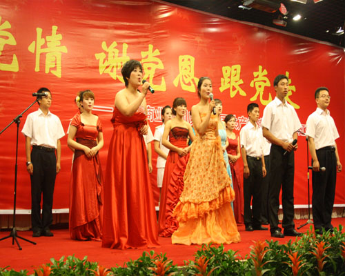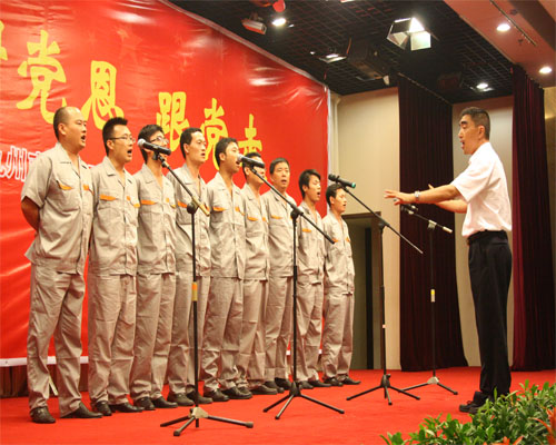 在舉國上下喜迎中國共產(chǎn)黨建黨90周年之際,集團黨委于6月28日在臨沂賓館舉行慶祝中國共產(chǎn)黨建黨九十周年大會暨“頌黨情  謝黨恩  跟黨走”紅歌會。