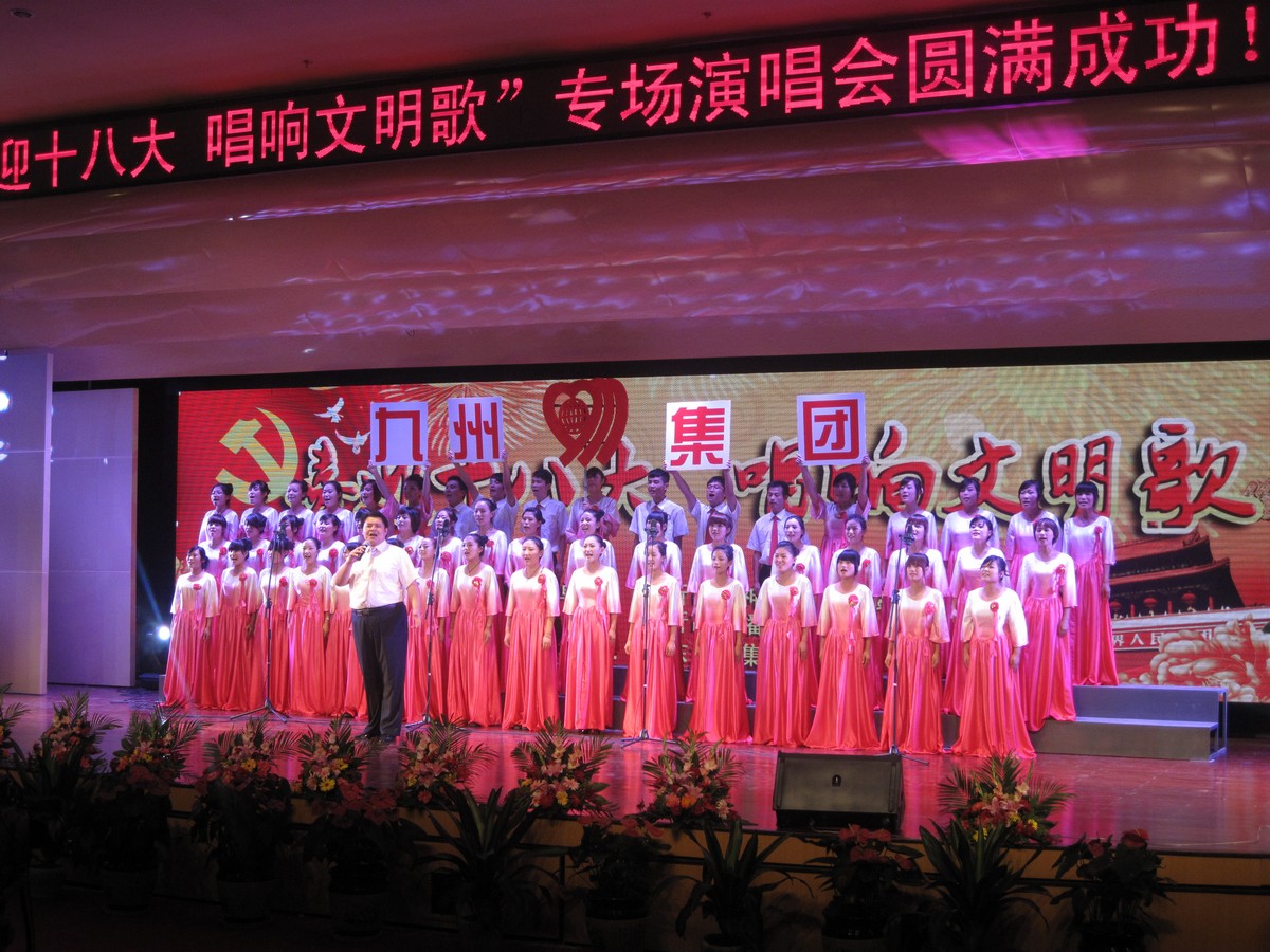 9月13日,由市文明辦和市廣播電視臺聯(lián)合舉辦的“喜迎十八大 唱響文明歌”專場演唱會在臨沂市群眾文化廣場舉行,集團(tuán)組織員工參加演唱會。 演出會上,集團(tuán)員工以飽滿的熱情合唱了《九州集團(tuán)之歌》,真摯的情感、嘹亮的歌聲,表達(dá)了全體九州人對黨、對祖國和對企業(yè)的無限熱愛,展現(xiàn)了九州人開拓創(chuàng)新,積極向上的精神風(fēng)貌。
