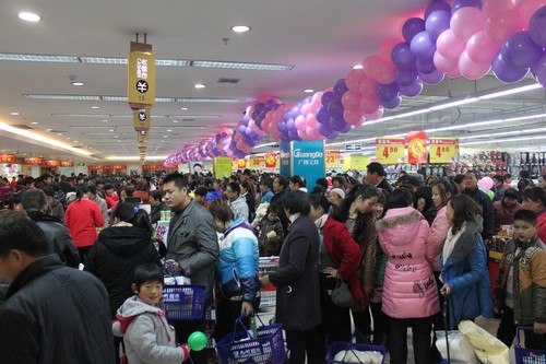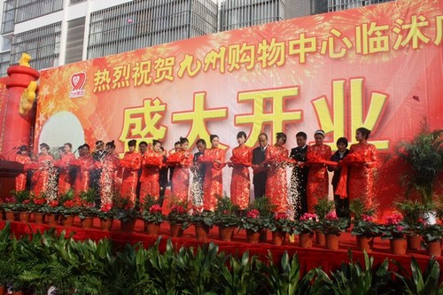 11月24日,位于臨沭縣城常林大街的九州購(gòu)物中心臨沭店正式開業(yè)。 臨沭縣委書記、縣人大常委會(huì)主任任慶虎,縣政協(xié)主席鐘華,縣人大常委會(huì)副主任王景光,縣政府副縣長(zhǎng)王新端等縣領(lǐng)導(dǎo);山東常林集團(tuán)董事長(zhǎng)張義華,副總經(jīng)理盛中義,上海同濟(jì)大學(xué)教授、景觀設(shè)計(jì)院院長(zhǎng)朱群等嘉賓;董事長(zhǎng)楊沂城,黨委書記王佐文,副總經(jīng)理杜培云、任重群等集團(tuán)領(lǐng)導(dǎo);以及經(jīng)銷商代表、消費(fèi)者等千余人參加開業(yè)慶典儀式。 臨沭縣政府副縣長(zhǎng)王新端代表縣委、縣府在開業(yè)儀式上講話。他對(duì)九州購(gòu)物中心臨沭店的開業(yè)表示熱烈的祝賀,對(duì)我集團(tuán)多年來(lái)誠(chéng)信經(jīng)營(yíng),科學(xué)管理所取得的優(yōu)異成績(jī)給予充分肯定,希望九州購(gòu)物中心臨沭店的開業(yè)為提升臨沭城市綜合服務(wù)水平、加快現(xiàn)代服務(wù)業(yè)發(fā)展做出積極貢獻(xiàn)。 山東常林集團(tuán)副總經(jīng)理盛中義代表常林集團(tuán)致賀詞。他代表常林集團(tuán)對(duì)九州購(gòu)物中心臨沭店的順利開業(yè)表示熱烈祝賀,認(rèn)為今天的順利開業(yè)是雙方強(qiáng)強(qiáng)聯(lián)合、攜手共贏、共謀發(fā)展的結(jié)果,他代表常林集團(tuán)祝愿九州購(gòu)物中心臨沭店生意興隆,事業(yè)發(fā)達(dá)。 楊永東代表集團(tuán)致歡迎詞。他首先對(duì)臨沭縣委、縣府等各級(jí)有關(guān)部門,山東常林集團(tuán)等單位對(duì)于購(gòu)物中心臨沭店的順利開業(yè)給予的支持與幫助表示感謝。并表示,今后九州購(gòu)物中心臨沭店將在臨沭縣委、縣府和各級(jí)有關(guān)部門的正確領(lǐng)導(dǎo)下,用一流的購(gòu)物環(huán)境、優(yōu)質(zhì)的服務(wù)和優(yōu)良的商品,為臨沭城鄉(xiāng)居民服務(wù),為臨沭縣商貿(mào)經(jīng)濟(jì)的繁榮發(fā)展做出應(yīng)有貢獻(xiàn)。 九州購(gòu)物中心臨沭店位于臨沭縣城常林大街,是集精品百貨、數(shù)碼家電、生活超市、餐飲娛樂(lè)等為一體的綜合性購(gòu)物中心,經(jīng)營(yíng)面積3萬(wàn)余平方米,是目前臨沭縣經(jīng)營(yíng)規(guī)模最大、經(jīng)營(yíng)品種最多、裝修檔次最高、服務(wù)最完善的大型購(gòu)物中心。