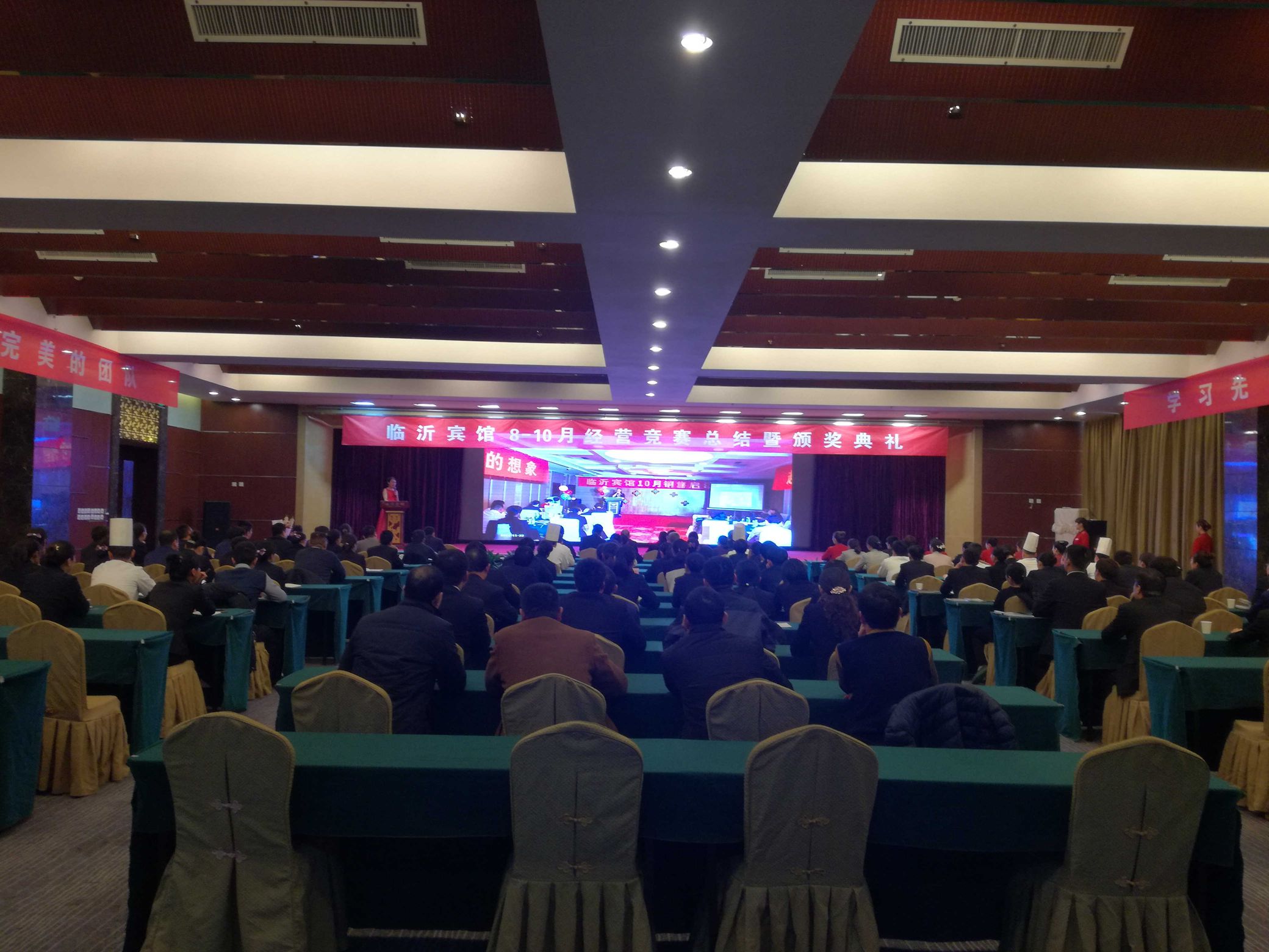 11月22日下午,臨沂賓館8至10月份經(jīng)營(yíng)競(jìng)賽總結(jié)大會(huì)暨頒獎(jiǎng)典禮在臨沂賓館開發(fā)區(qū)店蒙山廳舉行。會(huì)上對(duì)臨沂賓館8至10月份經(jīng)營(yíng)競(jìng)賽活動(dòng)期間各分店的完成情況進(jìn)行了通報(bào),對(duì)超額完成任務(wù)目標(biāo)的分店和部門進(jìn)行了獎(jiǎng)勵(lì),并對(duì)經(jīng)營(yíng)競(jìng)賽活動(dòng)期間表現(xiàn)突出的個(gè)人進(jìn)行了表彰。 自臨沂賓館開展8至10月份經(jīng)營(yíng)競(jìng)賽活動(dòng)以來,全體員工熱情高漲,充分發(fā)揮主觀能動(dòng)性,創(chuàng)造了升學(xué)宴接待的新高,收到了良好的效果。(臨沂賓館辦公室 王本強(qiáng))